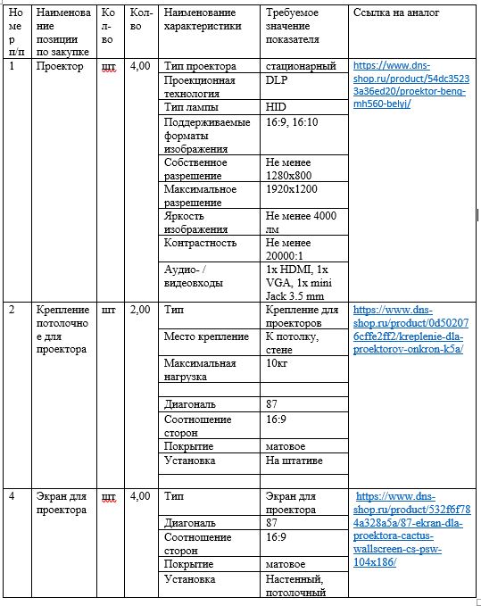 ПК в сборе, проекторы, экраны и крепления в соответствии с ТЗ