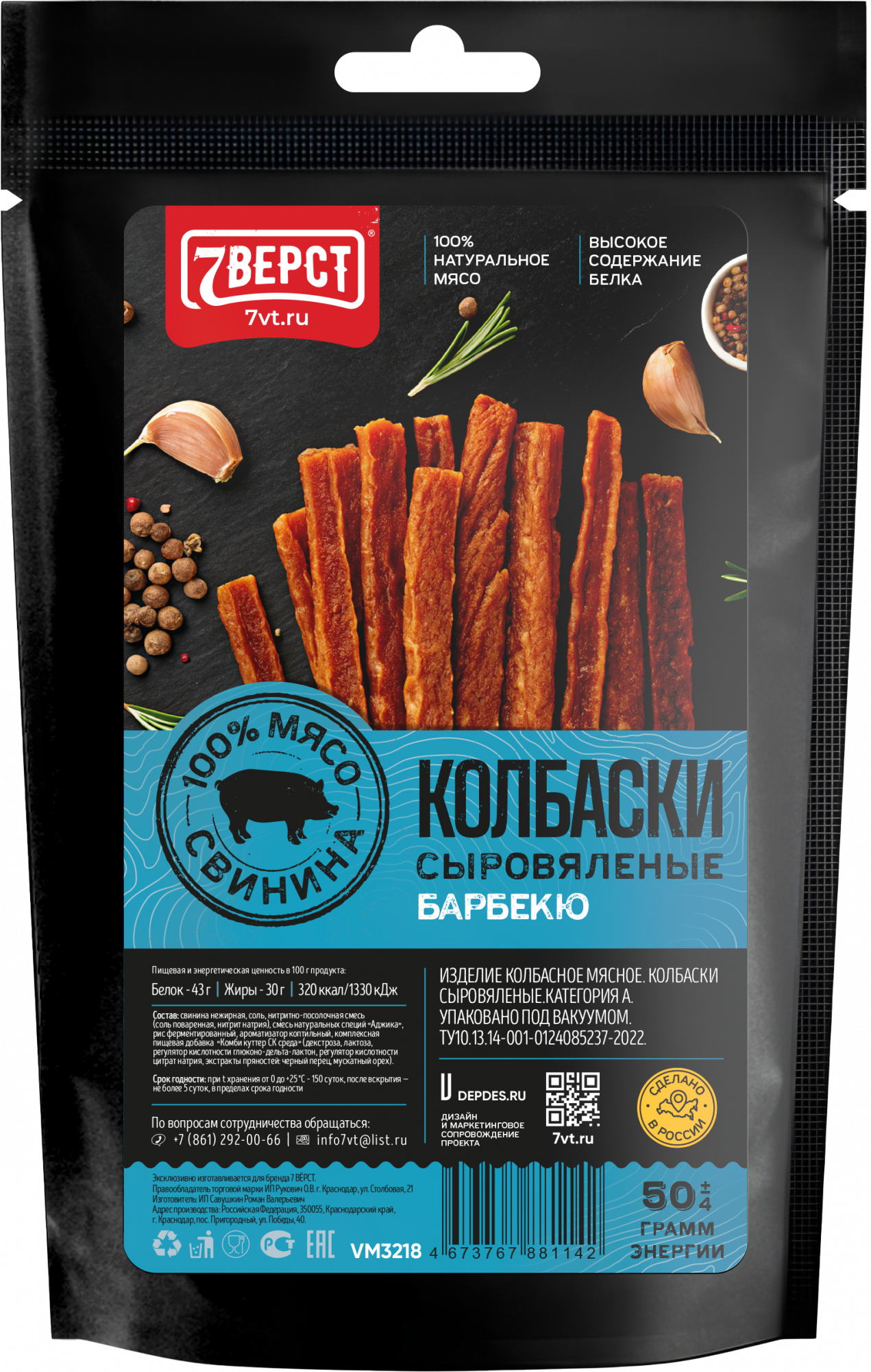 свинина нежирная, соль, нитритно-посолочная смесь (соль поваренная, нитрит натрия), смесь натуральных специй «Аджика», рис ферментированный, ароматизатор коптильный, комплексная пищевая добавка «Комби куттер СК среда».