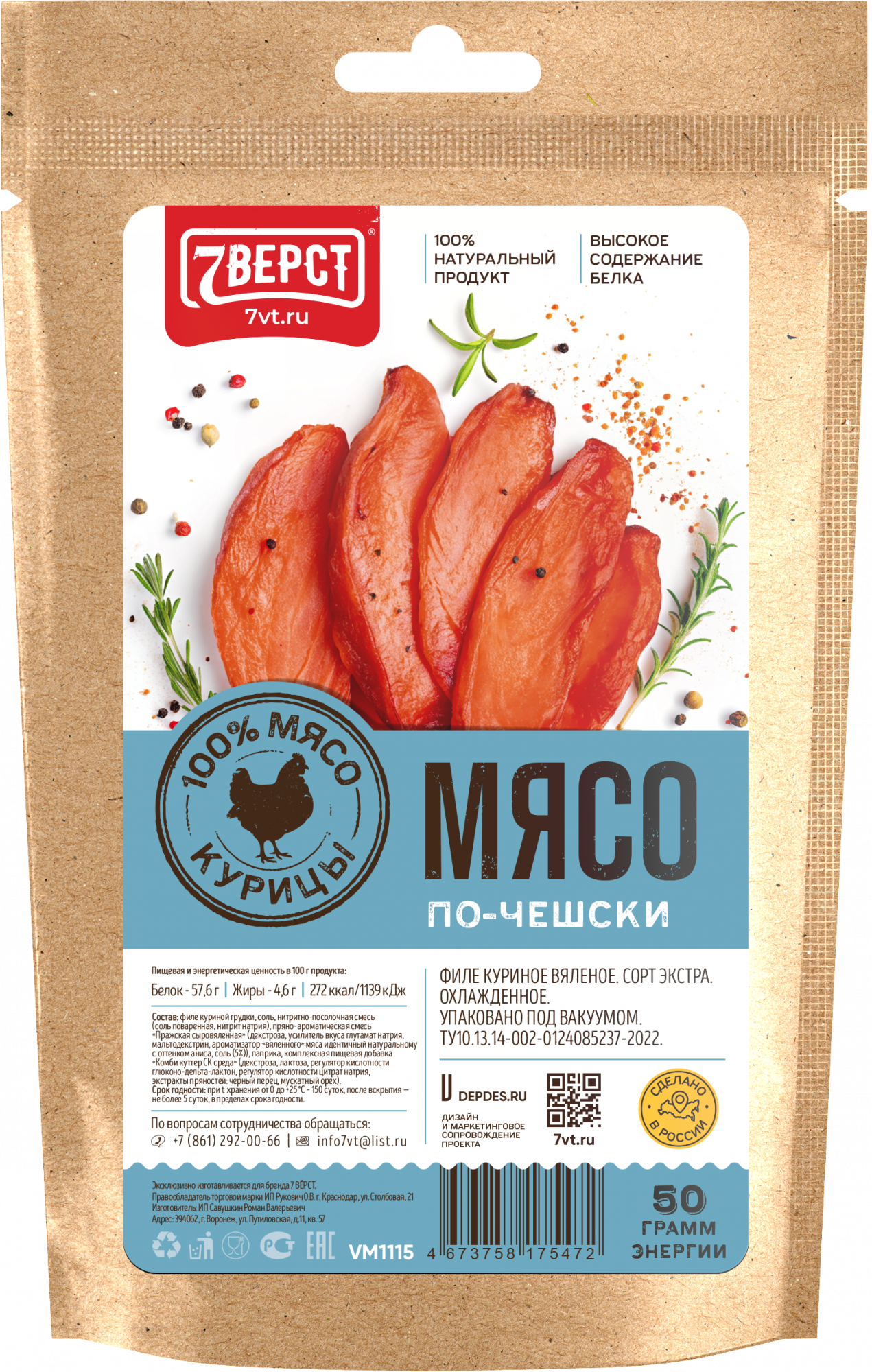 Филе куриной грудки, соль поваренная; нитритно-посолочная смесь (соль поваренная, нитрит натрия); комплексная пищевая добавка «Комби куттер СК среда»; пряно-ароматическая смесь «Пражская сыровяленая».