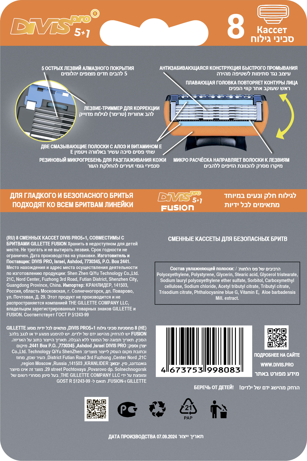 Аналог Gillette Fusion5 Сменные кассеты для бритья DIVIS PRO5+1 (8 кассет) - это ваш билет в мир комфорта и гладкости!