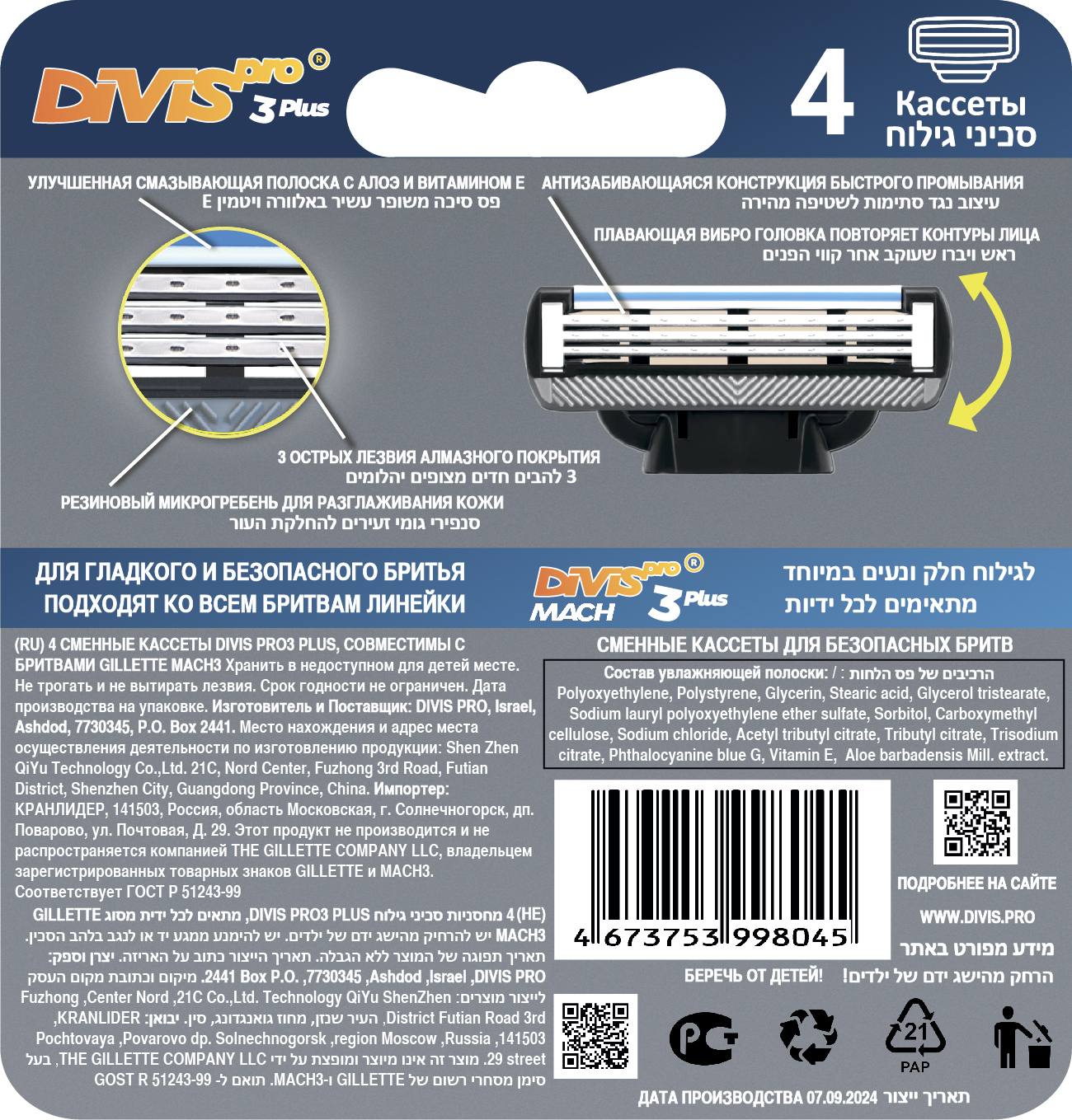 Закажите Аналог Gillette Mach3 Turbo Сменные кассеты для бритья DIVIS PRO3 PLUS сегодня и сделайте шаг к безупречному бритью!