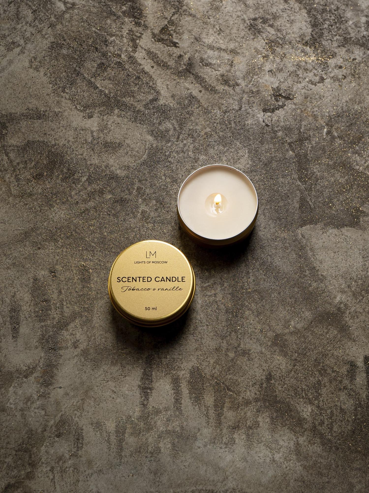 Ароматическая свеча с ароматами в ассортименте в золотой баночке. Объем 50 мл.