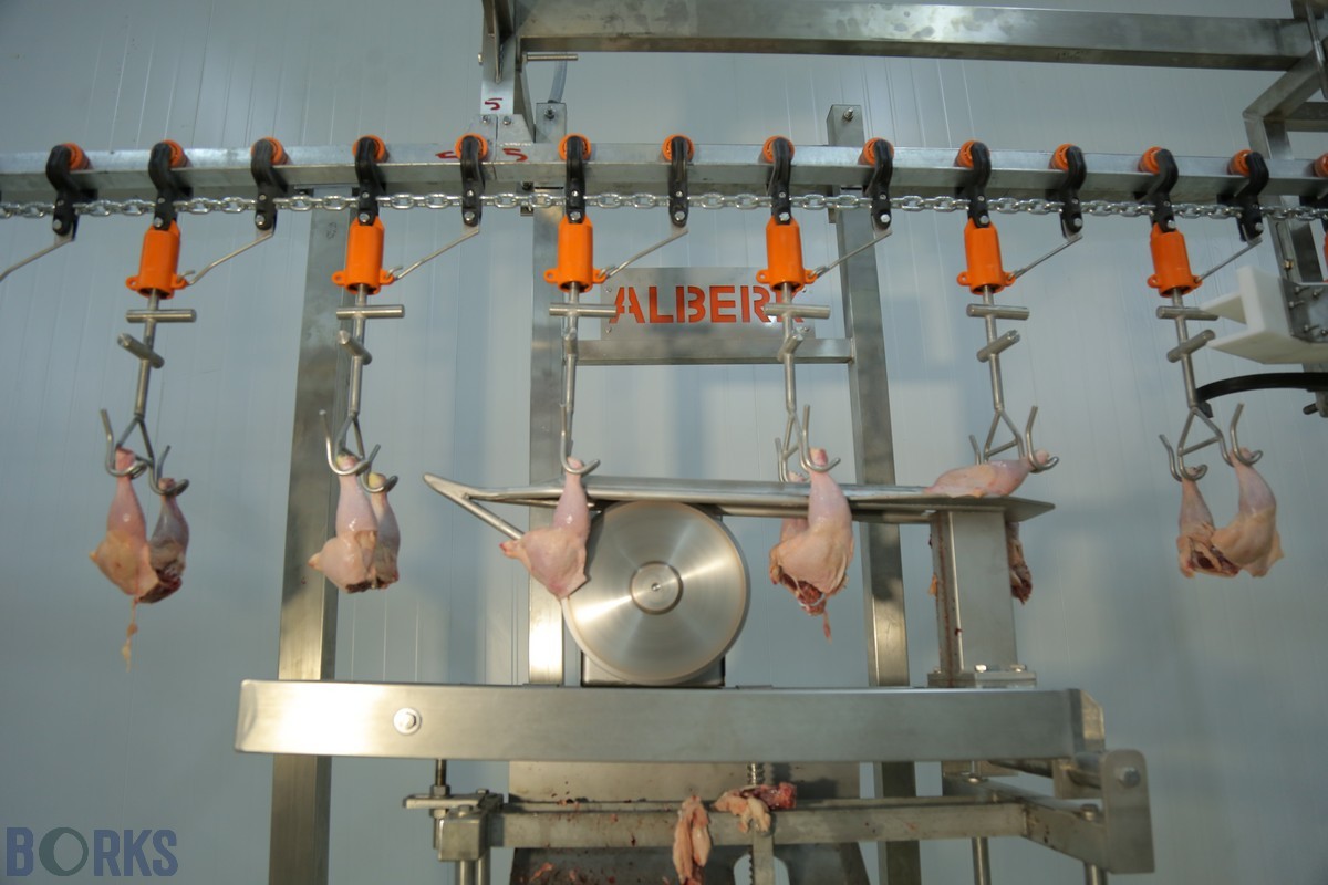 В каждой машине имеется регулировка высоты и механизмы для управления направляющими элементами. Таким образом, обеспечена легкость разделки тушек различных весовых групп.