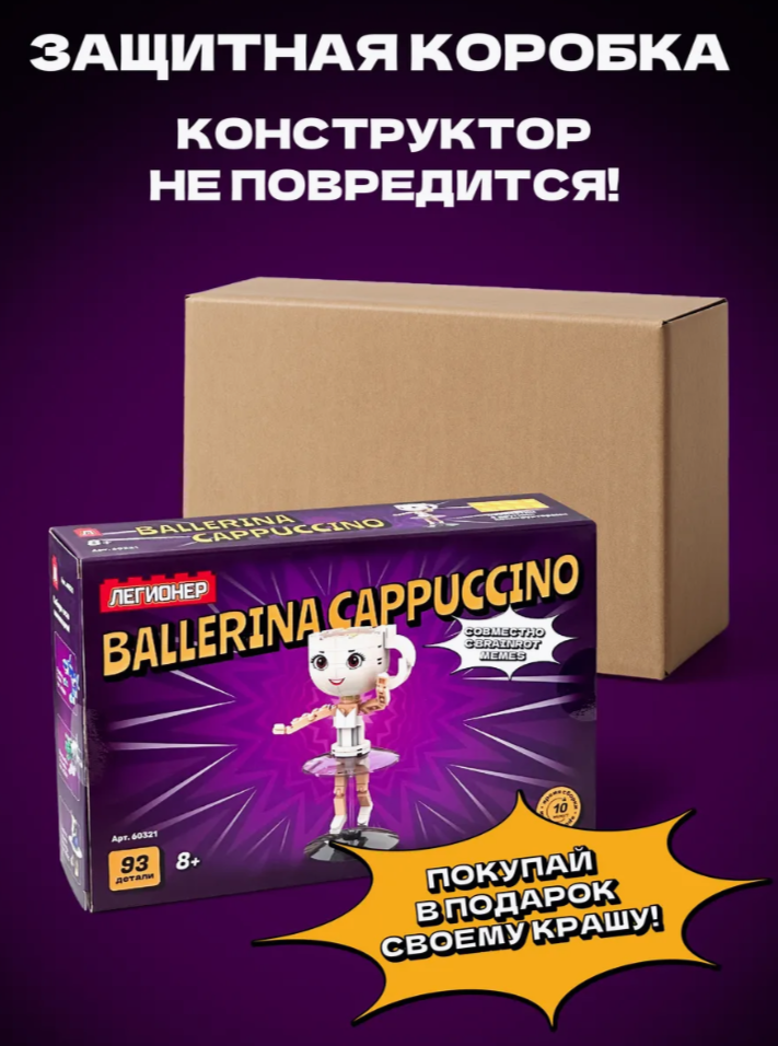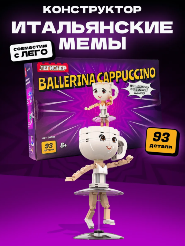 93 детали, чтобы собрать ульт итальянских мемов эпохи Тралалеро Тралала. Капучина — бывшая муза Асасино и Сахура, но всёперевернулось, когда Вака Сатурнита запустила кибер-апокалипсис. Теперь она танцует в руинах старого мира и ищет выход из матрицы.