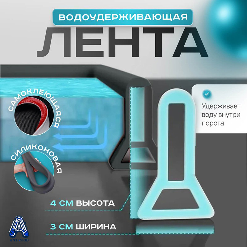 Силиконовая водоудерживающая лента отлично подходит для душевых кабин и других зон, где важно предотвратить протечки воды. Это самоклеящийся материал, который легко устанавливается и плотно прилегает к поверхности.
