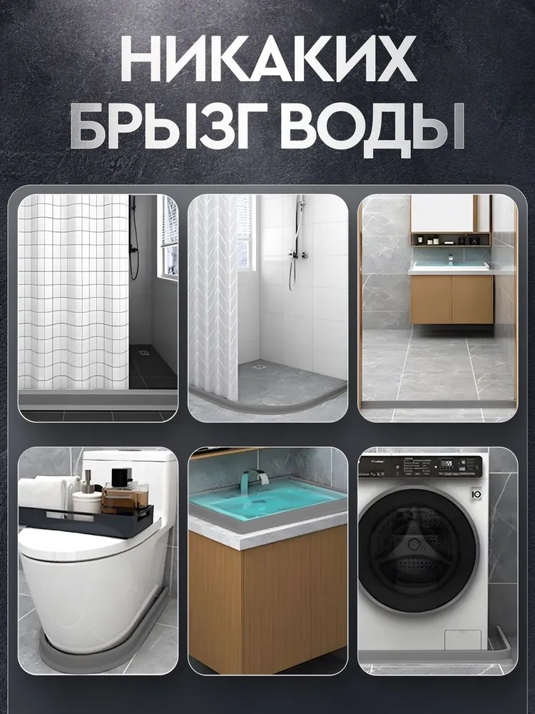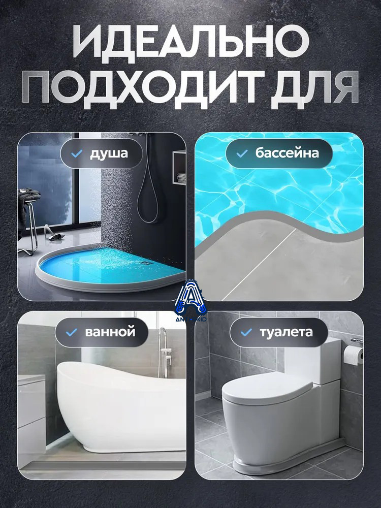 Её можно применять на плоских и наклонных бордюрах, а также на нижней части душевых дверей. Это предотвращает выход воды за пределы кабины. Лента также закрывает зазоры между ванной и стеной, не давая влаге проникать внутрь.