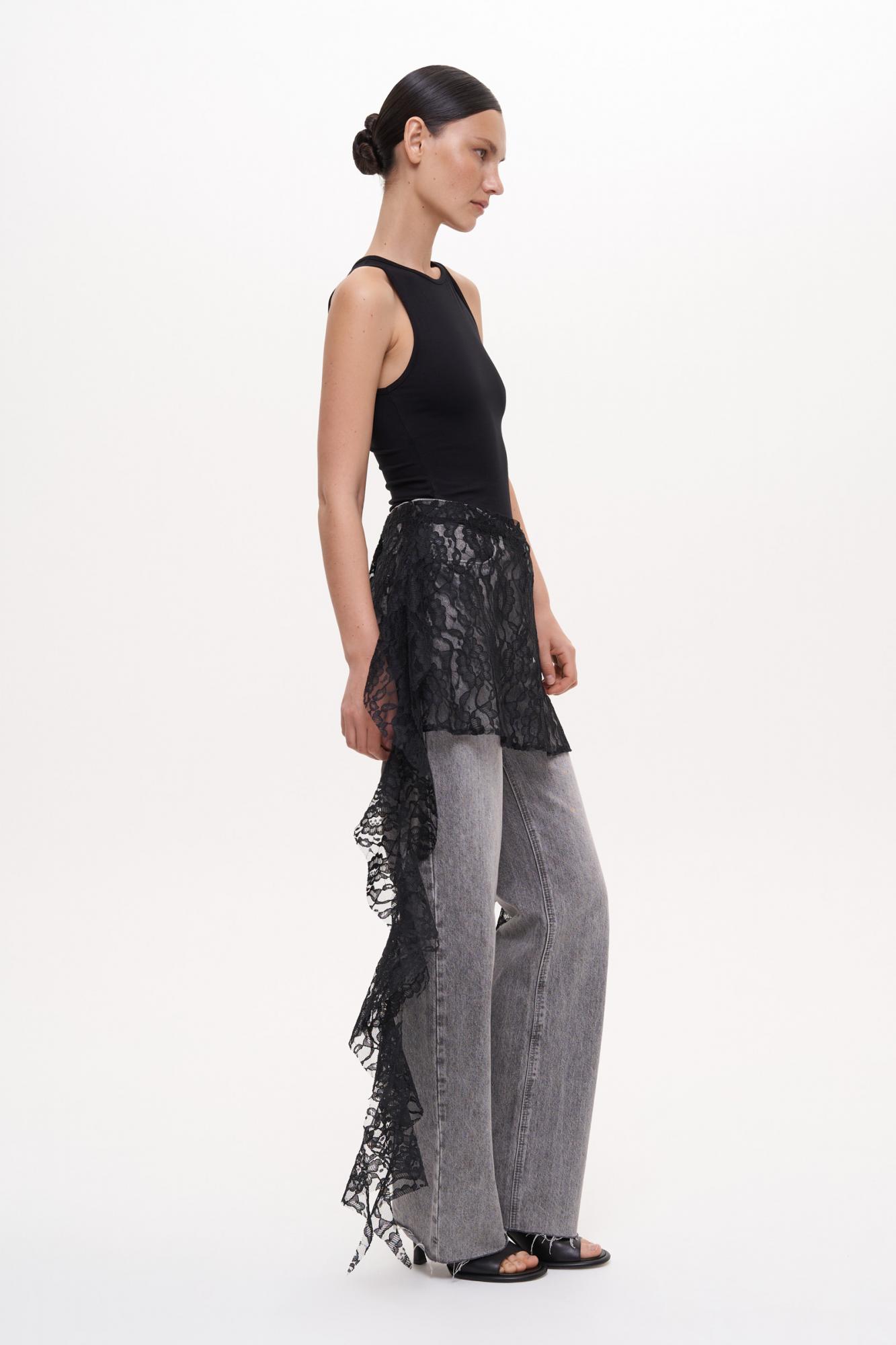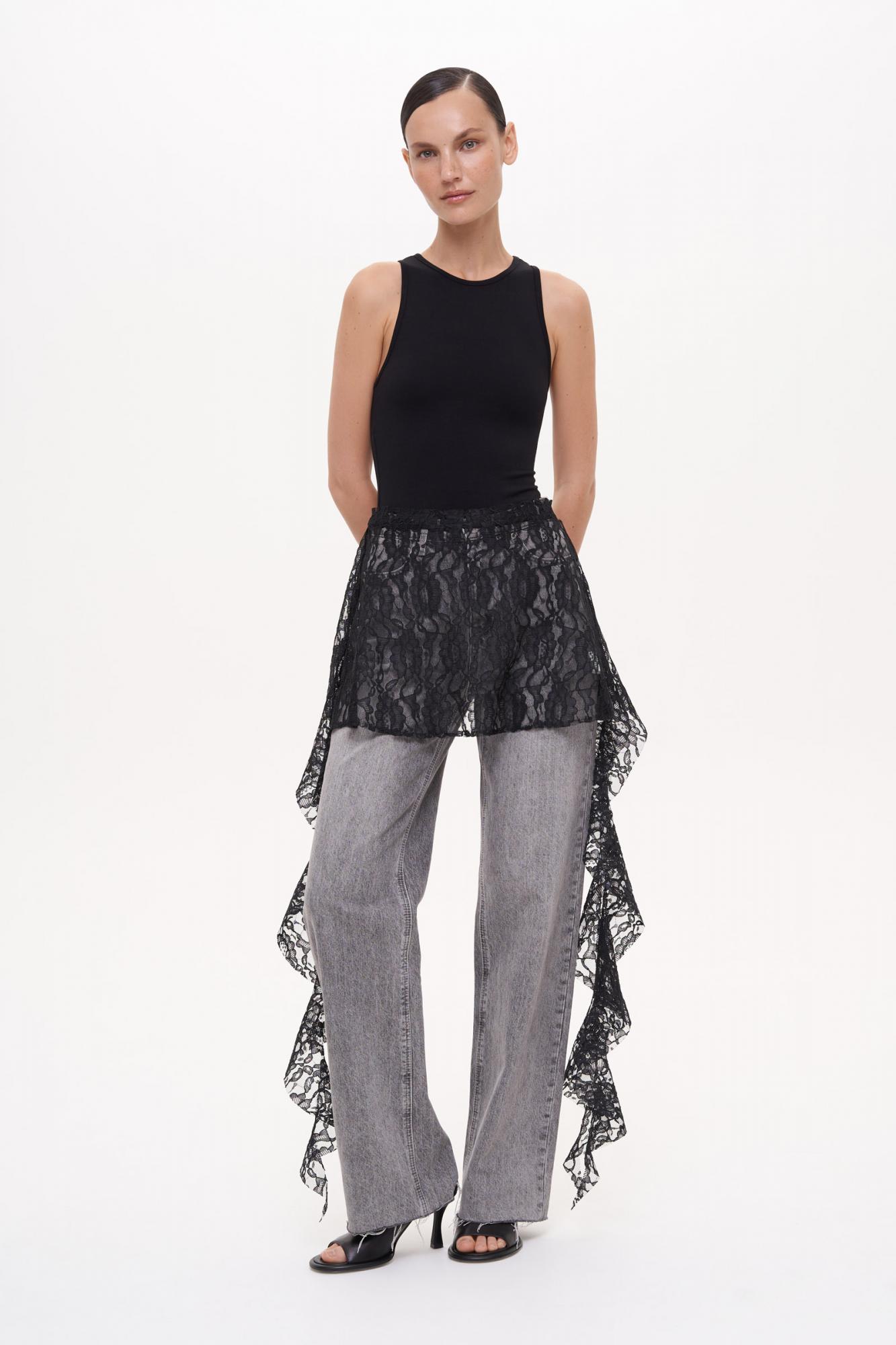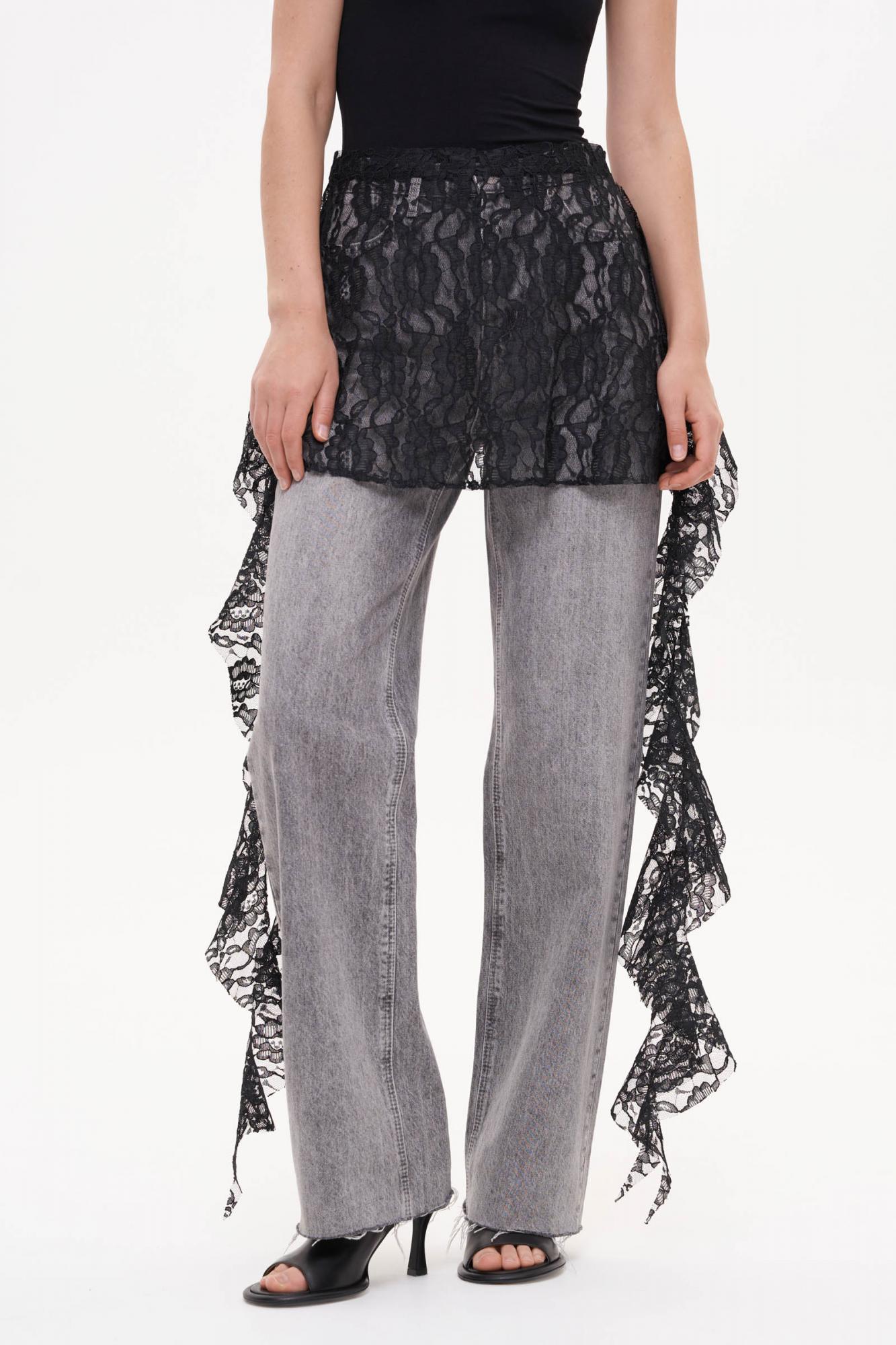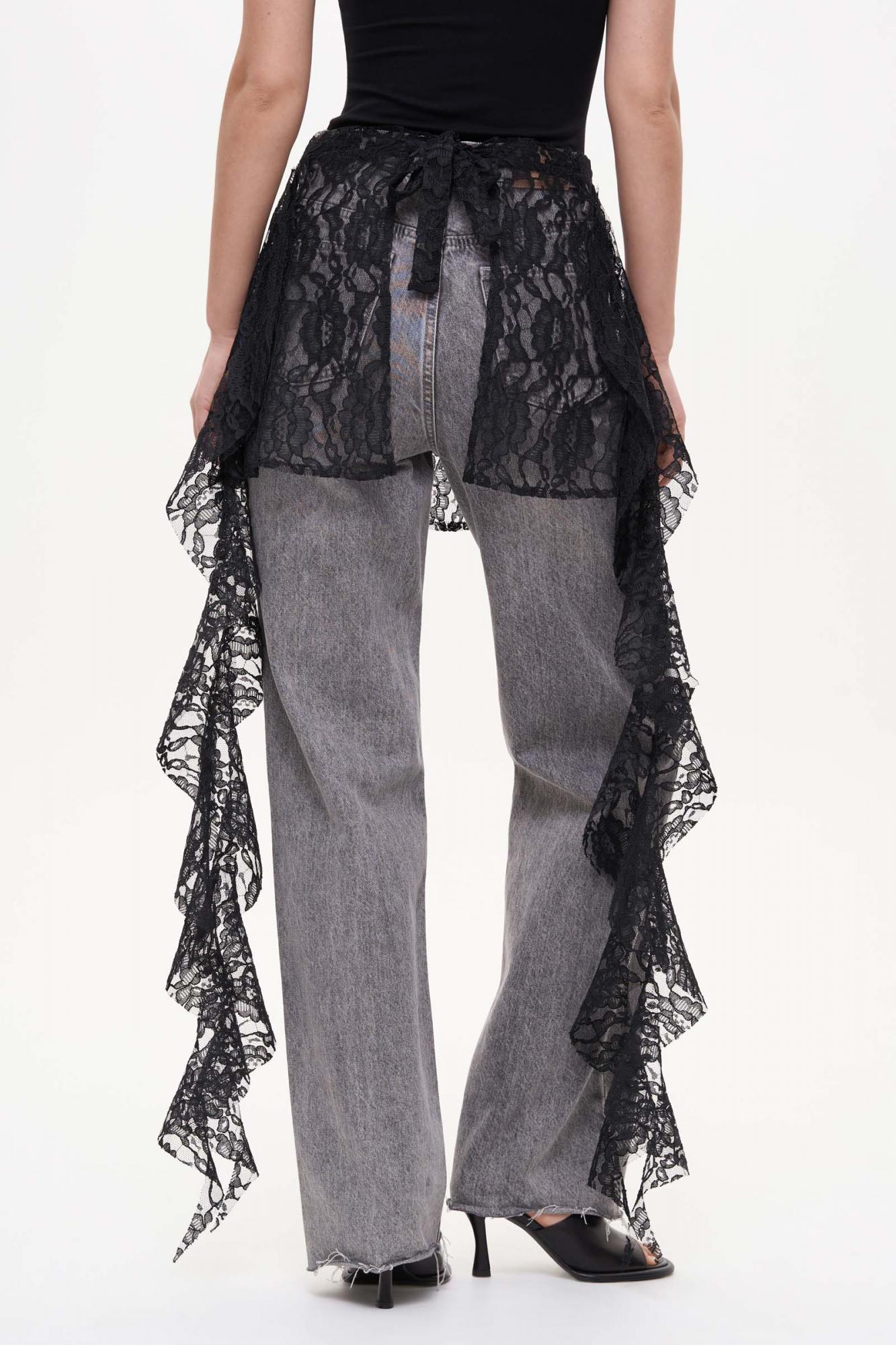 Баска из полупрозрачного кружева. Акцентный аксессуар выполнен с длинными боковыми рюшами и завязками сзади.