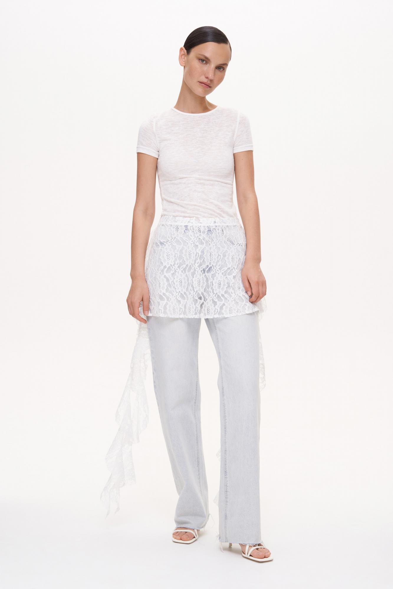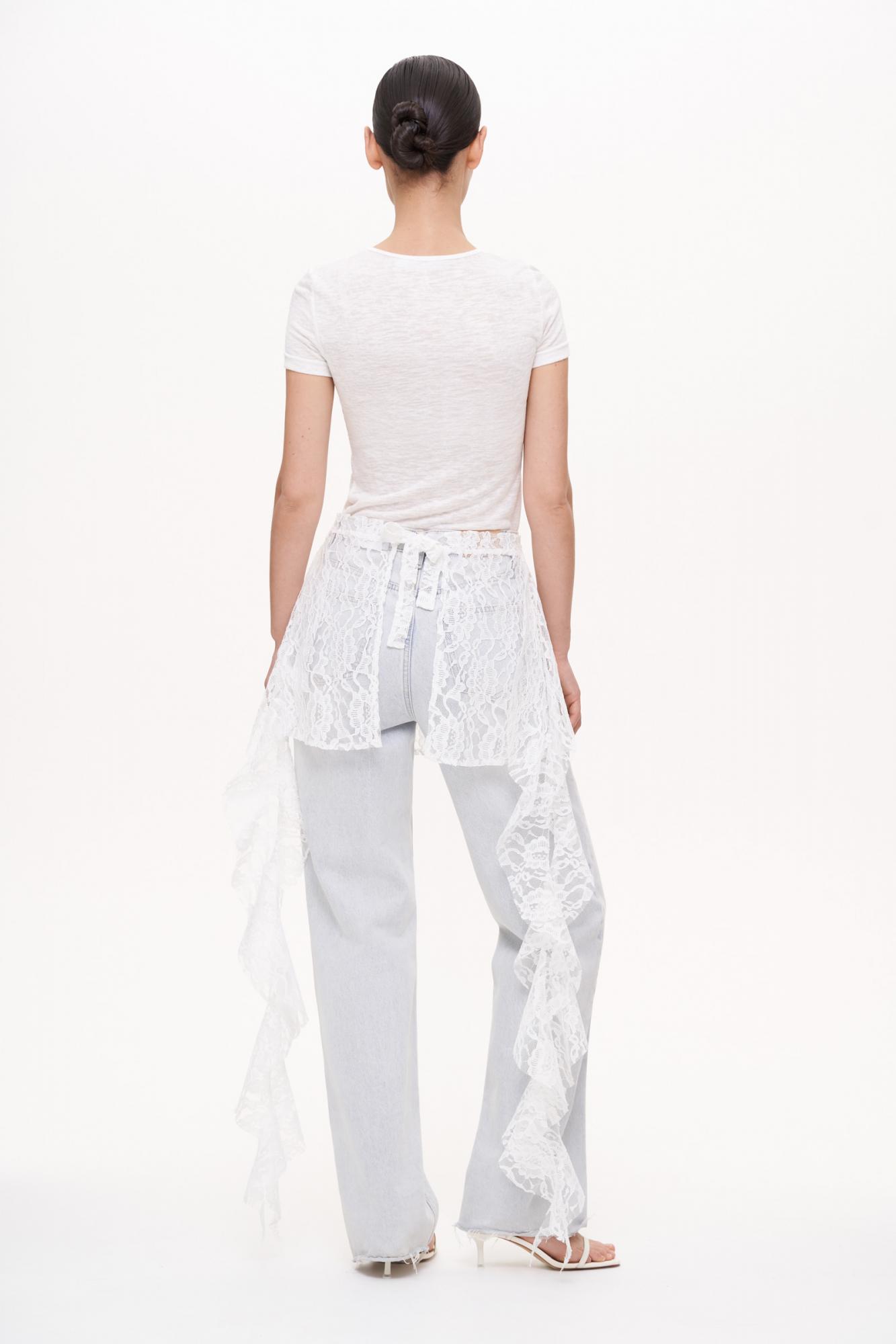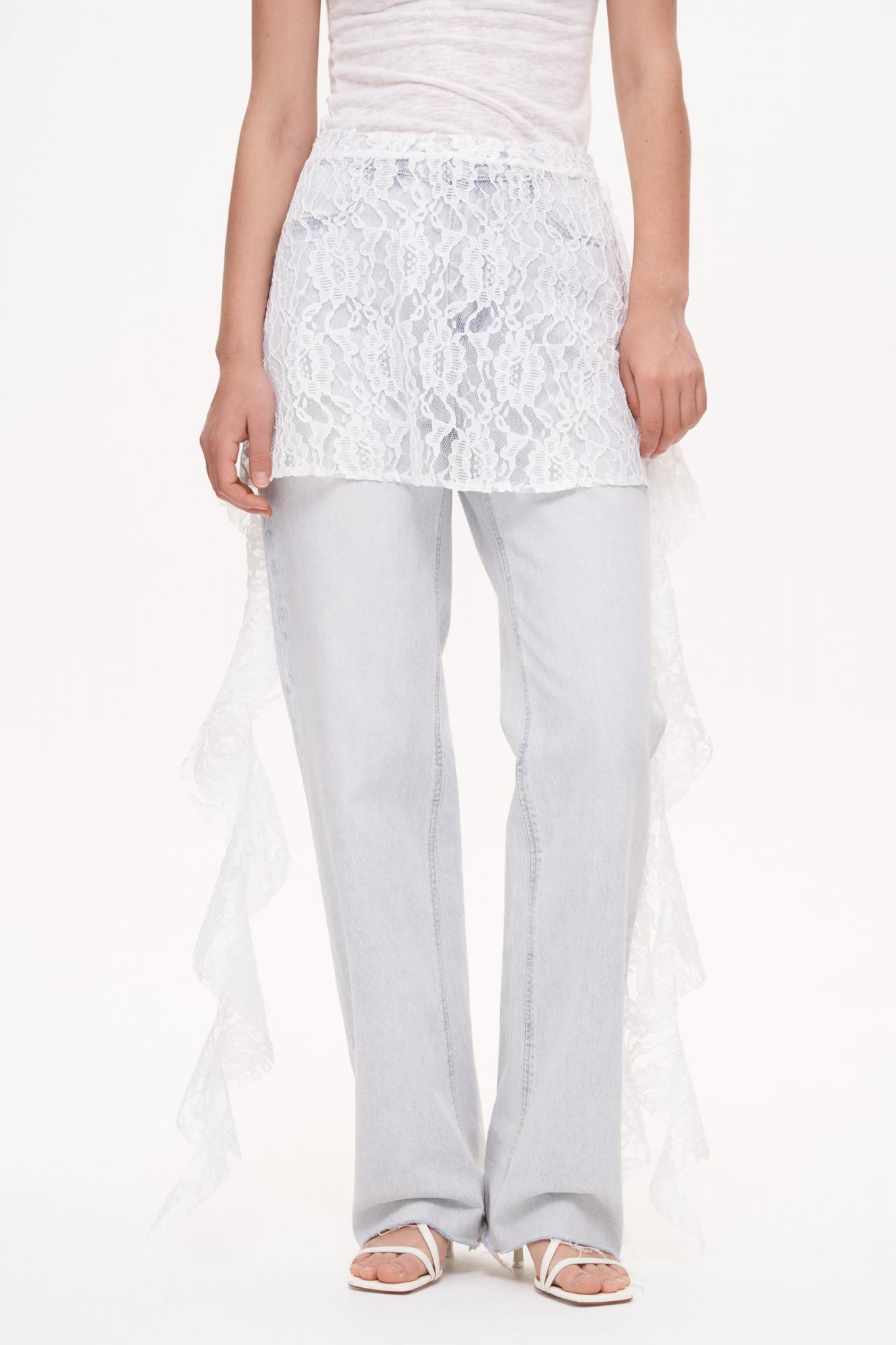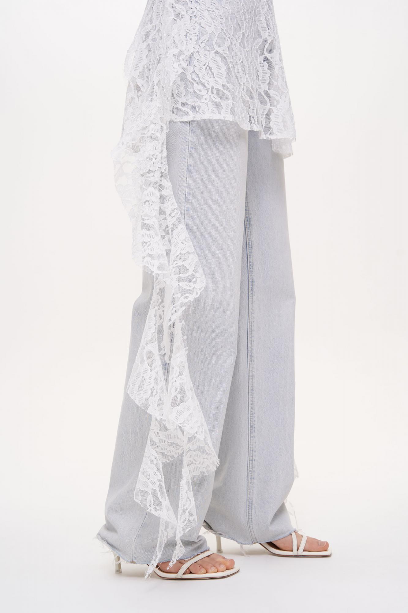 Баска из полупрозрачного кружева. Акцентный аксессуар выполнен с длинными боковыми рюшами и завязками сзади.
