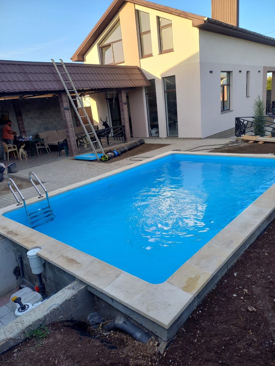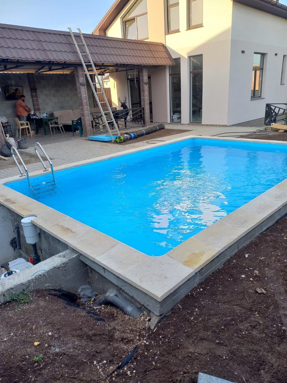 Стены и дно из полипропилена толщиной 0,5 см, ребра жесткости и обичайка 0,8 см. Устойчив к УФ излучениям и морозам.