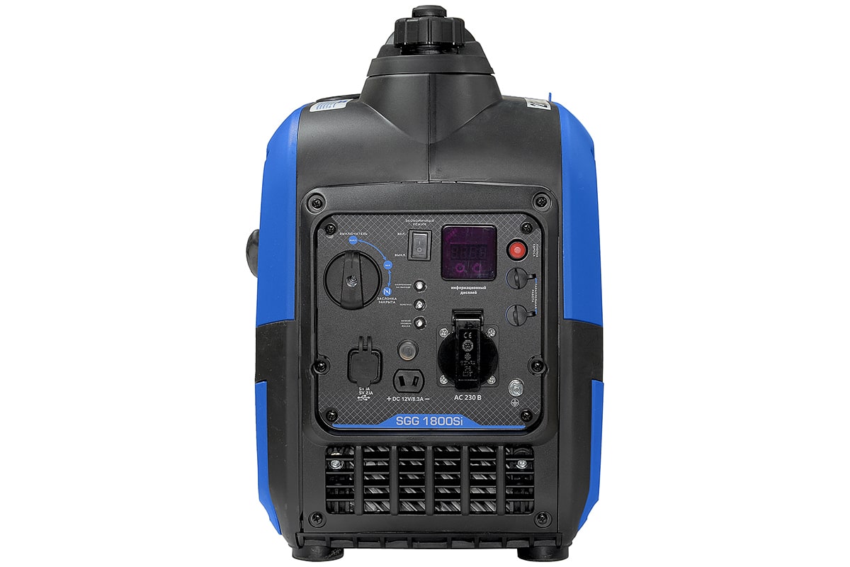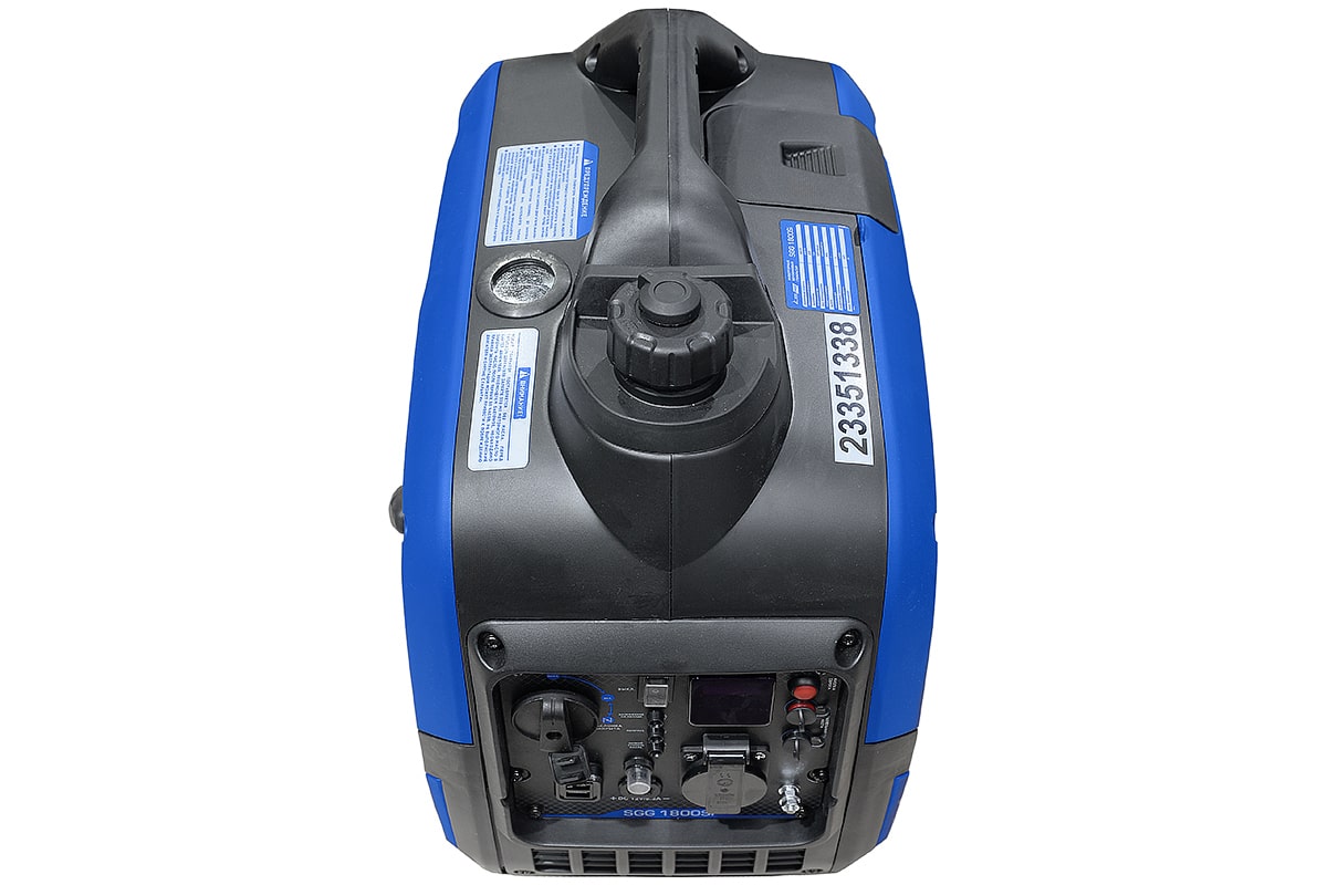 Бензогенератор инверторный SGG 1800Si в шумопоглощающем кожухе предназначен для подключения к нему потребителей тока общей максимальной мощностью до 2,0 кВт. Переносной компактный инверторный генератор предназначен для питания маломощных электроприборов на загородном участке, в походе, на рыбалке.