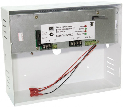 Блок источника резервированного питания БИРП12/10,0 обеспечивает выходную мощность до 120 Вт в сетевом диапазоне от 150 до 265В благодаря применению импульсного ШИМ-преобразователя. Электронная схема прибора обеспечивает стабилизированное выходное напряжение и защищает нагрузку от импульсов и всплесков сетевого напряжения и иных отклонений от нормальных параметров работы электросети.