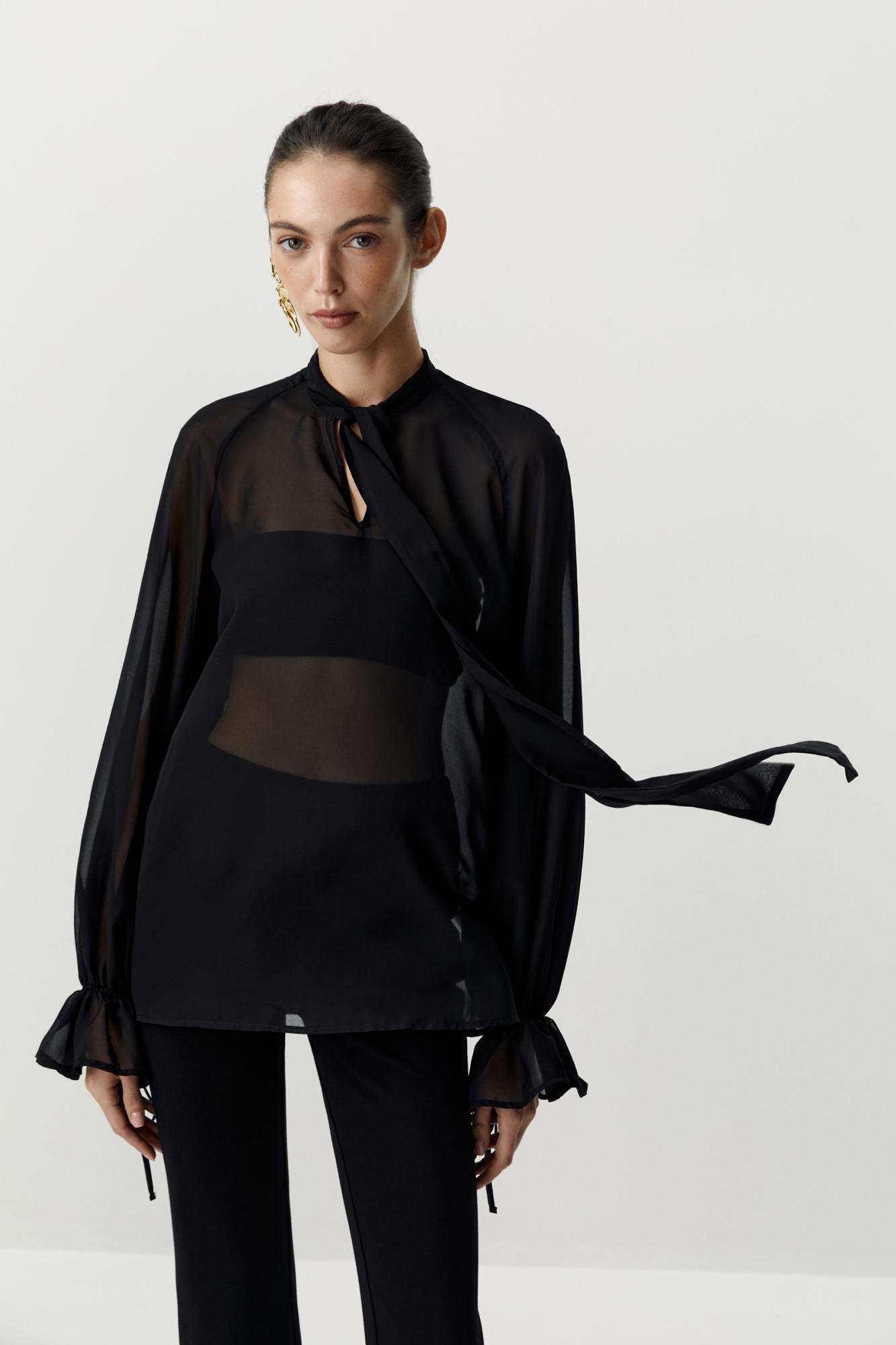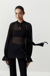 Блуза в стиле бохо из шифона (Черный)