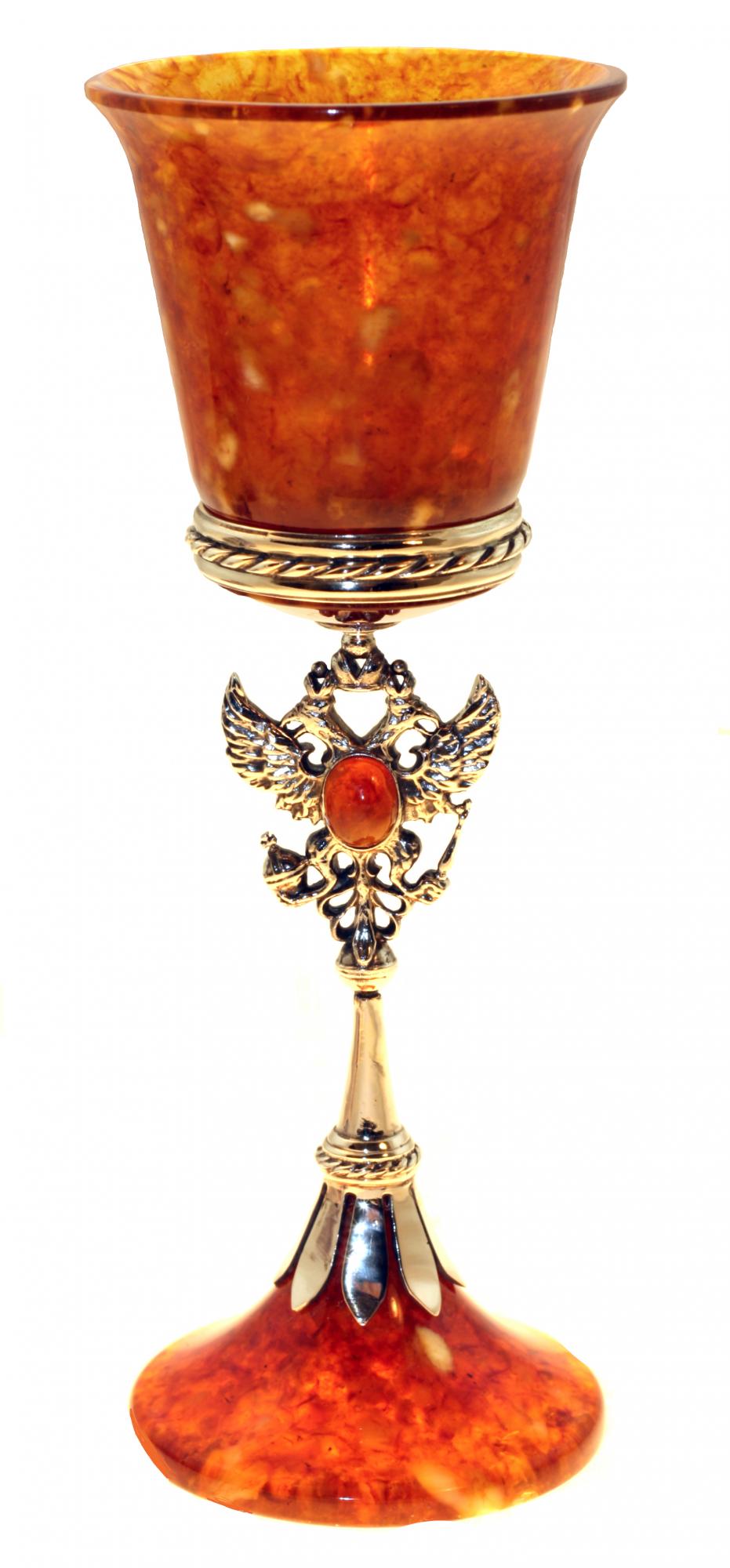 Бокал изготовлен из натурального балтийского янтаря и белой ювелирной бронзы. Высота бокала 18 см., объем 75 мл. Оттенок янтаря может отличаться от представленного на фото. Отгружается в подарочном футляре.