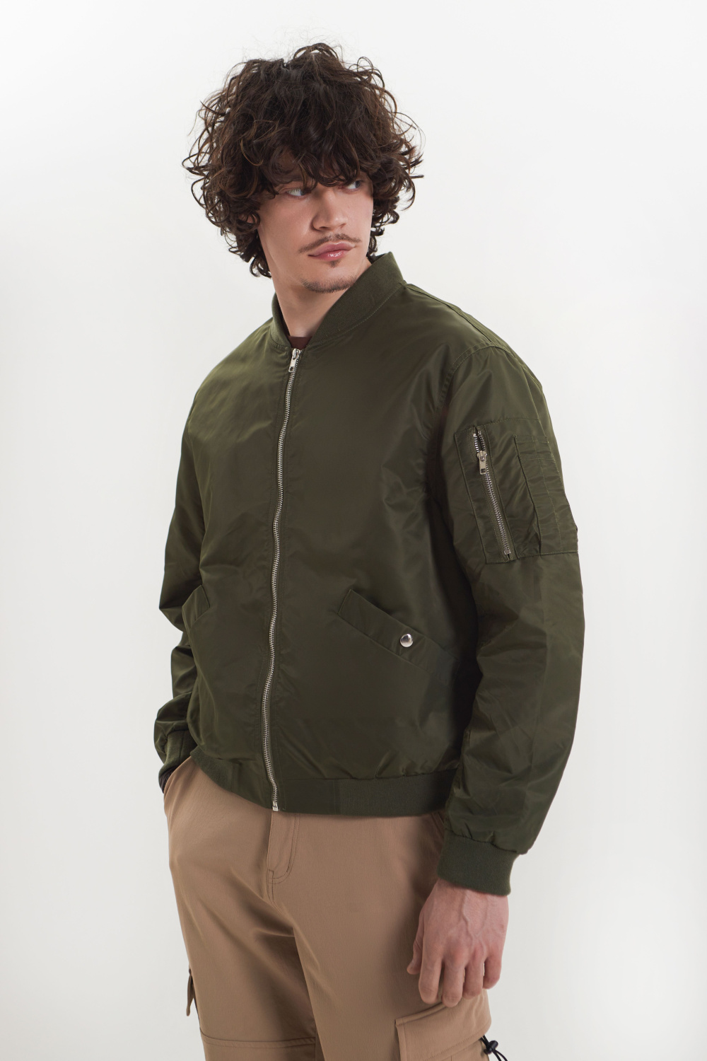 Куртка-бомбер мужская, фасона оверсайз, с застежкой на молнию. Прорезные...