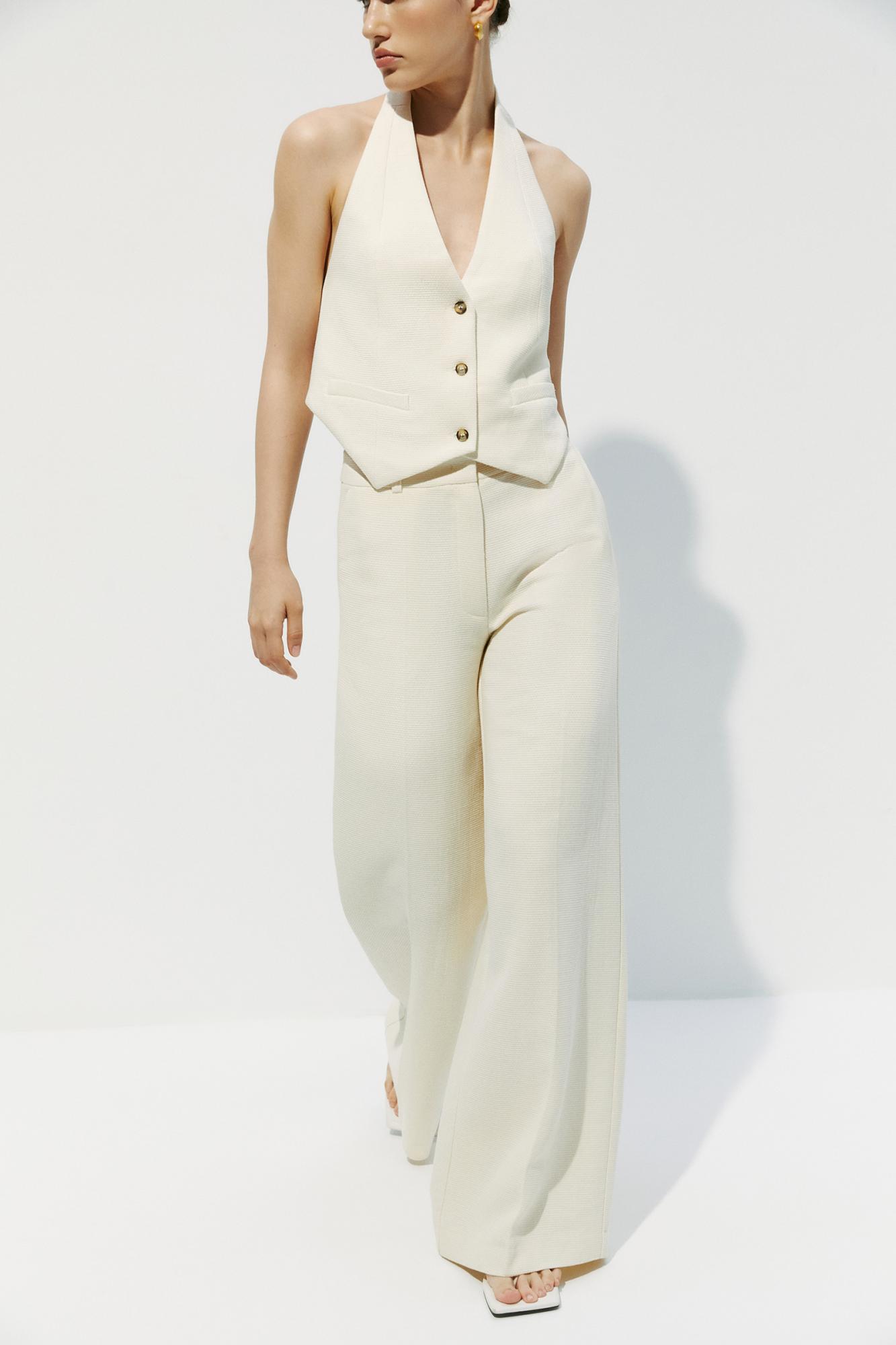 Брюки из фактурной ткани – часть костюмной группы. Носите в составе тройки с жилетом и пиджаком. Стилизуйте для неформальных выходов с белыми рубашками, топами и футболками.