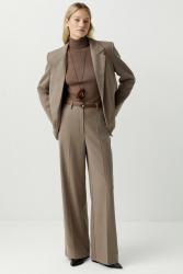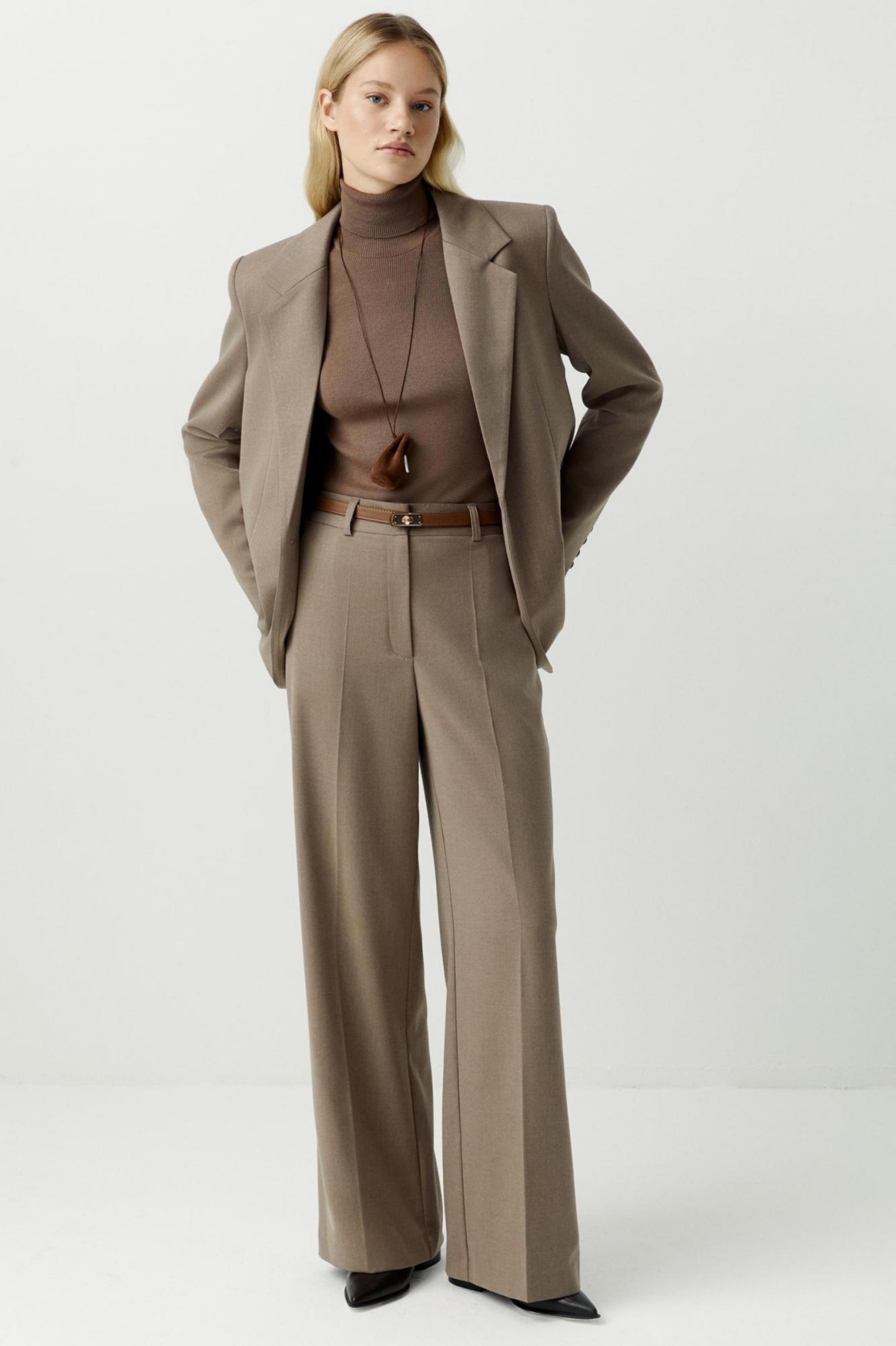 Чтобы получить законченный образ в офис, стилизуйте брюки с жилетом и пиджаком из аналогичной ткани. Добавьте трикотажный джемпер или лонгслив для создания исключительно комфортного лука. Данную модель брюк легко можно трансформировать из строгой классики в вечернюю, сочетайте с атласным топом или рубашкой в пижамном стиле, расстегнув верхние пуговицы.