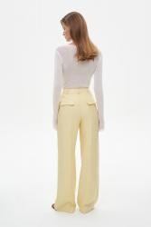 Широкие брюки из легкого льна. Модель выполнена с корсажным поясом для комфортной посадки на талии. Элегантный контраст создает нежная ткань с классическим силуэтом и стрелками, делая более расслабленную версию. Изделие дополнено декоративными отлетными клапанами сзади. Необходим бережный уход.
