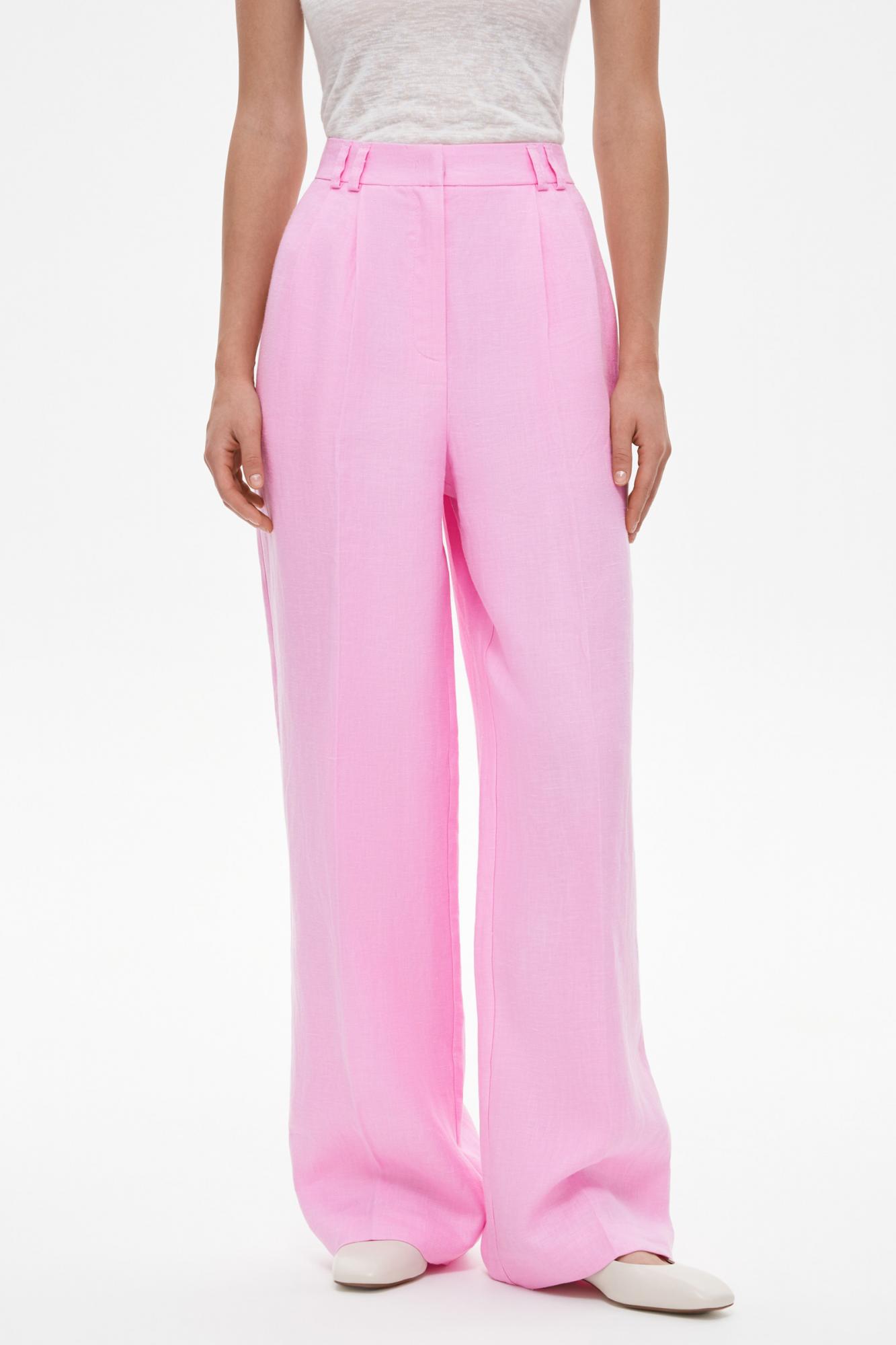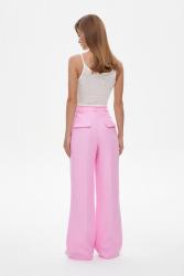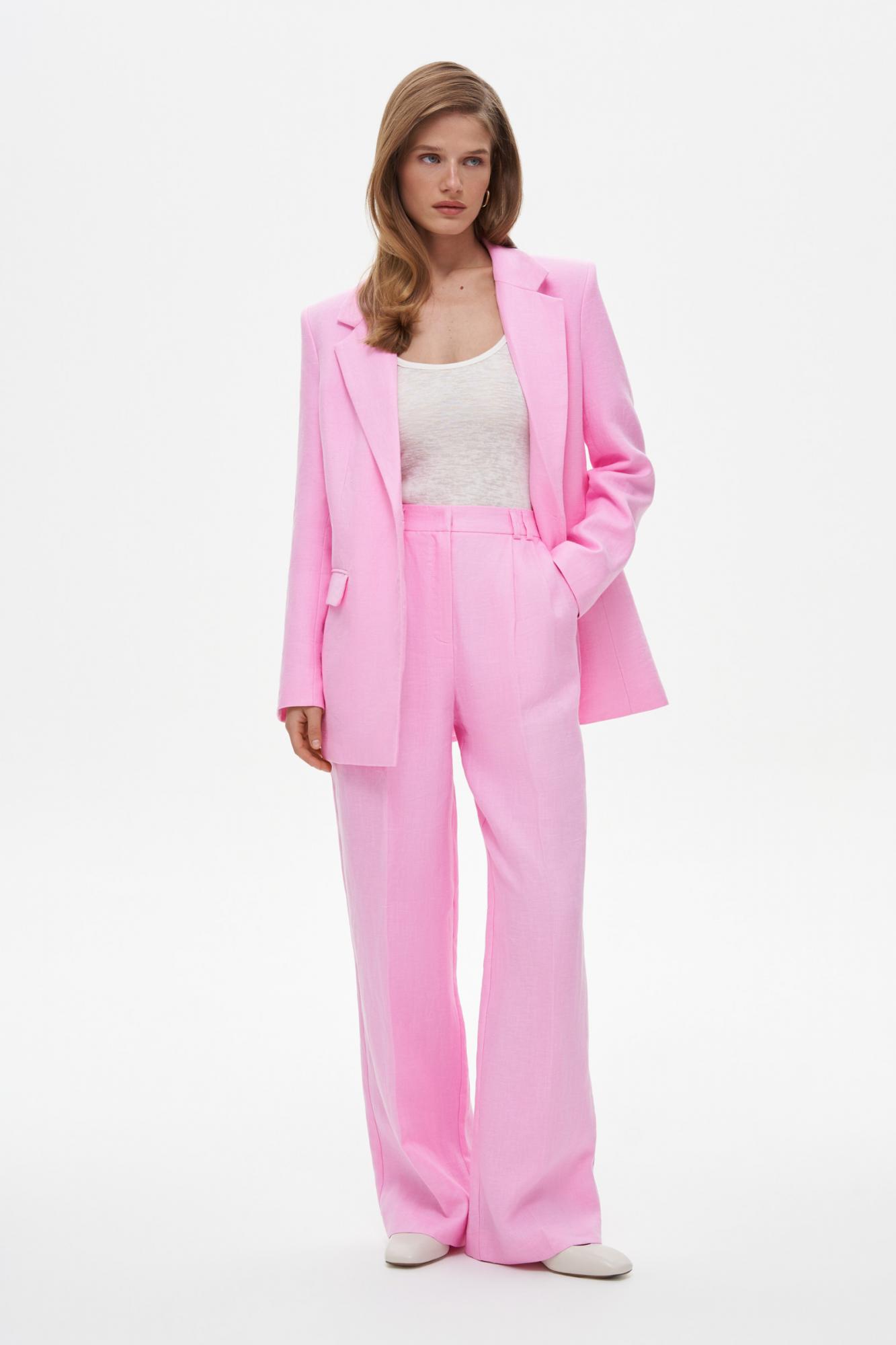 Широкие брюки из легкого льна. Модель выполнена с корсажным поясом для комфортной посадки на талии. Элегантный контраст создает нежная ткань с классическим силуэтом и стрелками, делая более расслабленную версию. Изделие дополнено декоративными отлетными клапанами сзади. Необходим бережный уход.
