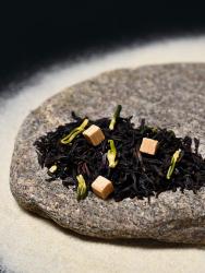 Чёрный чай, сердцевина семян лотоса, кусочки карамели, натуральный ароматизатор лотос.