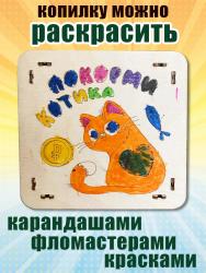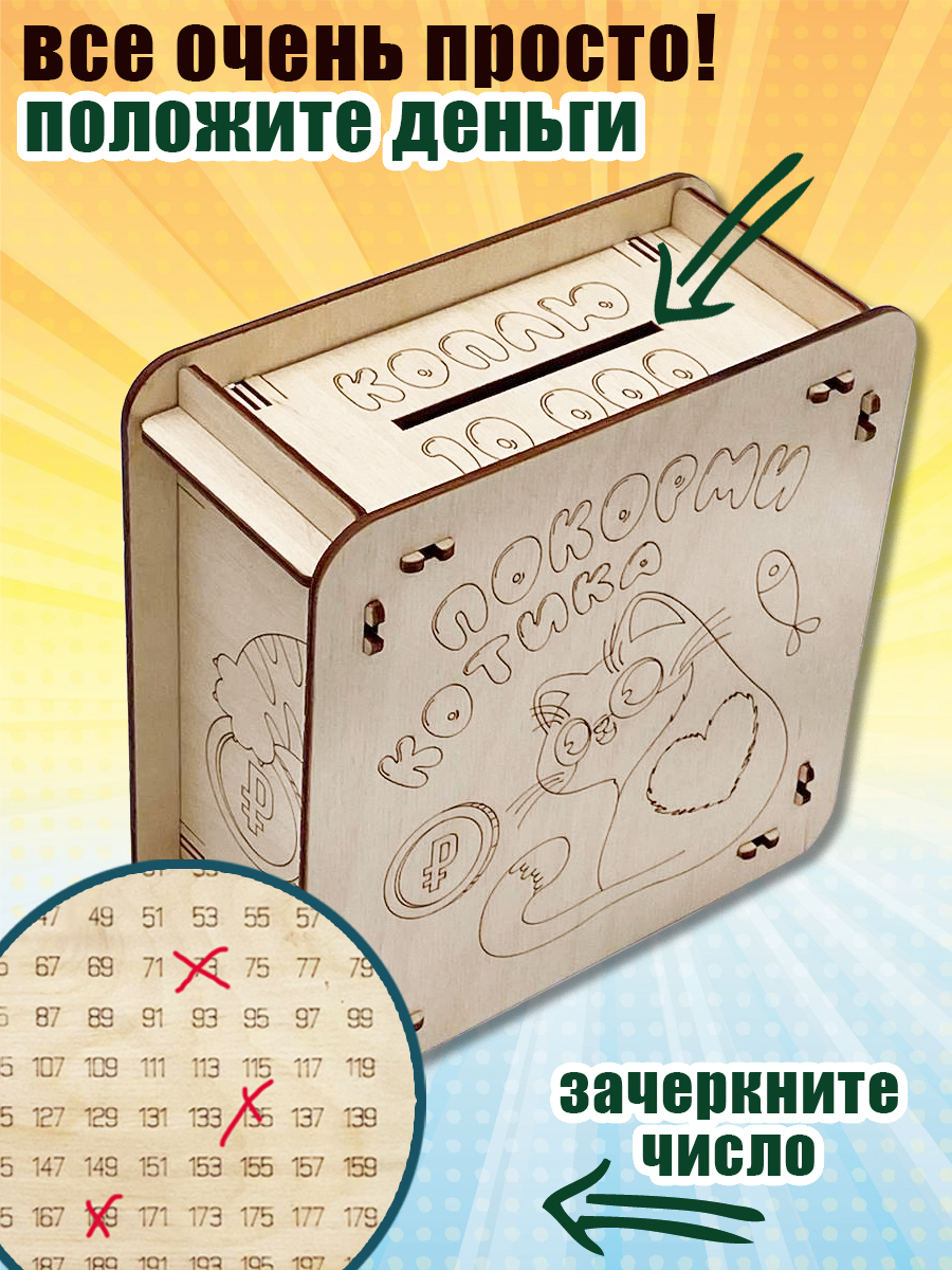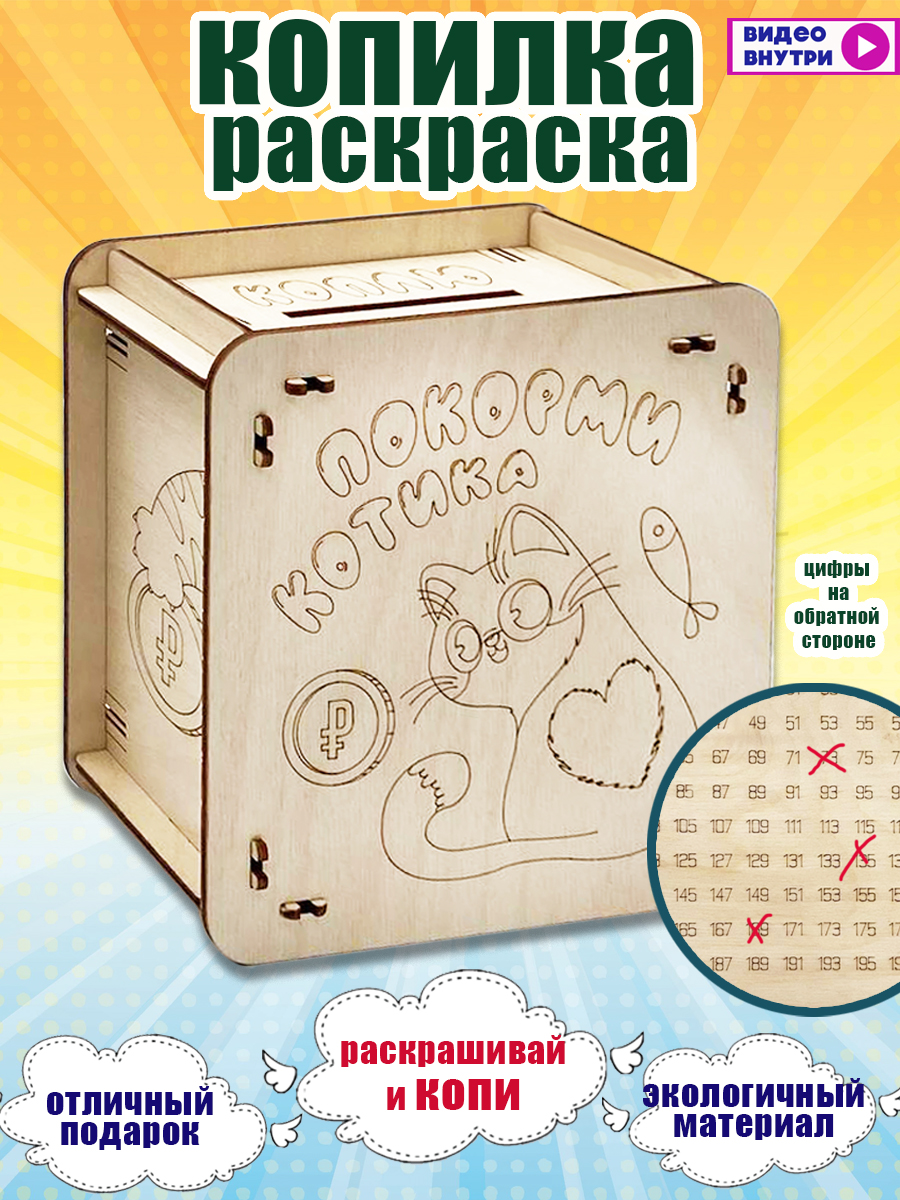 Копилка детская. Копилка деревянная с цифрами с обратной стороны — зачеркивайте сумму и копите! Копилка для монет и для бумажных денег, можно раскрасить, для этого подойдут фломастеры, краски или карандаши.