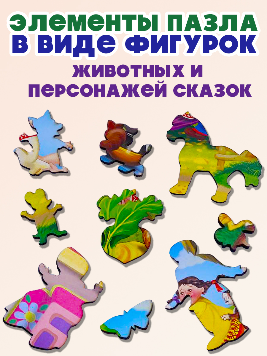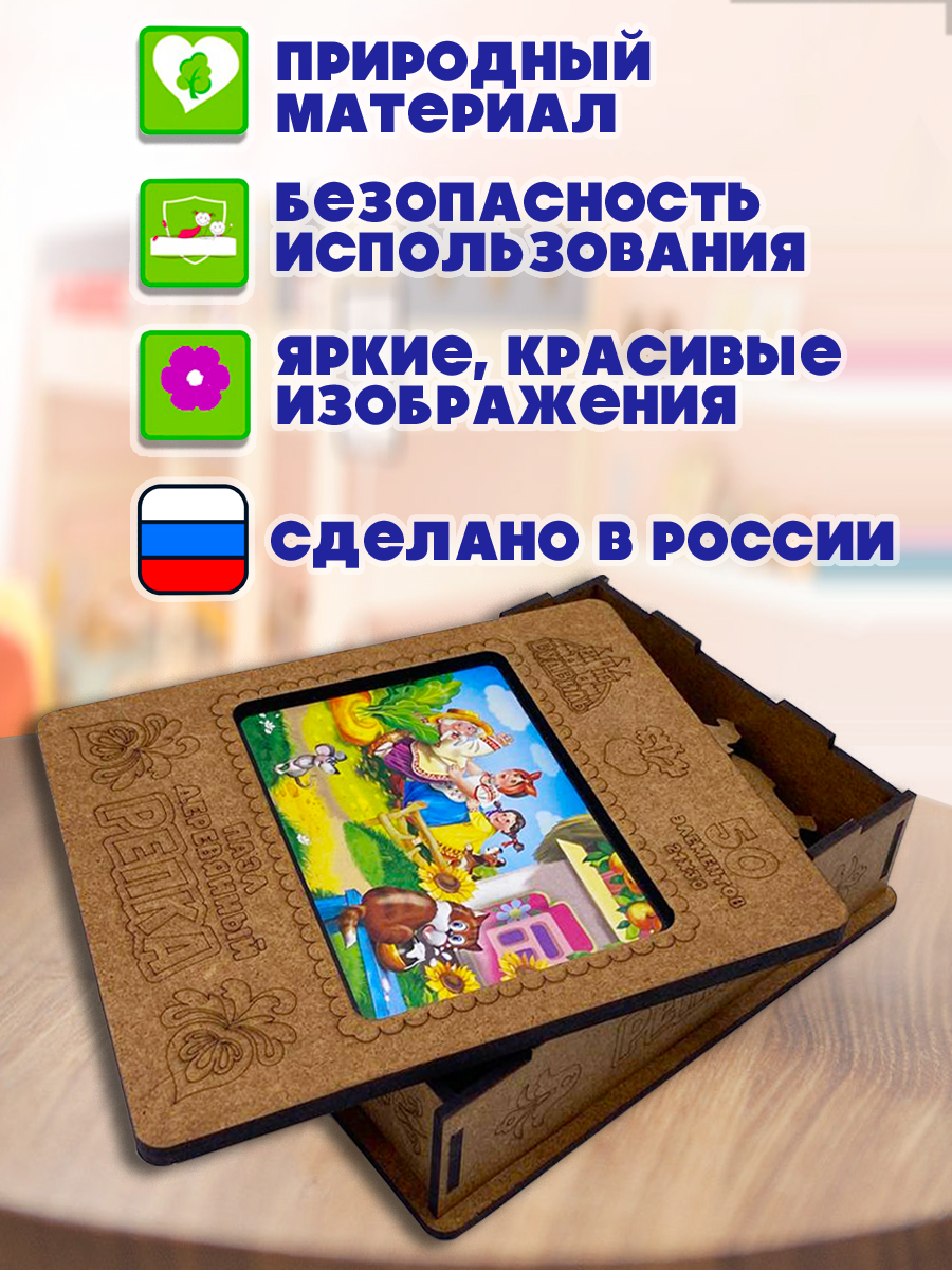 Деревянные пазлы для детей, серия сказки. В серии представлены пазлы детские на тему сказок: Курочка Ряба, Колобок, Теремок, Репка. Особенностью деревянных пазлов для малышей, является оригинальность элементов пазла — они выполнены в виде персонажей сказок. Деревянные пазлы для детей и взрослых можно собирать всей семьей или компанией детей. Фигурные деревянные пазлы -это не просто пазлы, а экологичные и безопасные. Все элементы пазлов идеально отшлифованы, без зазубрин и не оставляют занозы. Натуральный и прочный материал, который приятно держать в руках. Приятно пахнет деревом. Мы продумали хранение — пазлы для детей укомплектованы в деревянный сундучок. После игры ребёнок будет учиться складывать детали обратно. Сундучок не только красивый, но и функциональный и прочный. Пазлы прекрасно подойдут в подарок детям на праздник, утренник, день рождения, 8 марта, 23 февраля или Новый год!