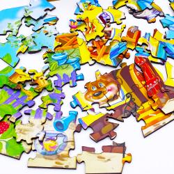 Деревянные пазлы для детей, серия сказки. В серии представлены пазлы детские на тему сказок: Курочка Ряба, Колобок, Теремок, Репка. Особенностью деревянных пазлов для малышей, является оригинальность элементов пазла — они выполнены в виде персонажей сказок. Деревянные пазлы для детей и взрослых можно собирать всей семьей или компанией детей. Фигурные деревянные пазлы -это не просто пазлы, а экологичные и безопасные. Все элементы пазлов идеально отшлифованы, без зазубрин и не оставляют занозы. Натуральный и прочный материал, который приятно держать в руках. Приятно пахнет деревом. Мы продумали хранение — пазлы для детей укомплектованы в деревянный сундучок. После игры ребёнок будет учиться складывать детали обратно. Сундучок не только красивый, но и функциональный и прочный. Пазлы прекрасно подойдут в подарок детям на праздник, утренник, день рождения, 8 марта, 23 февраля или Новый год!