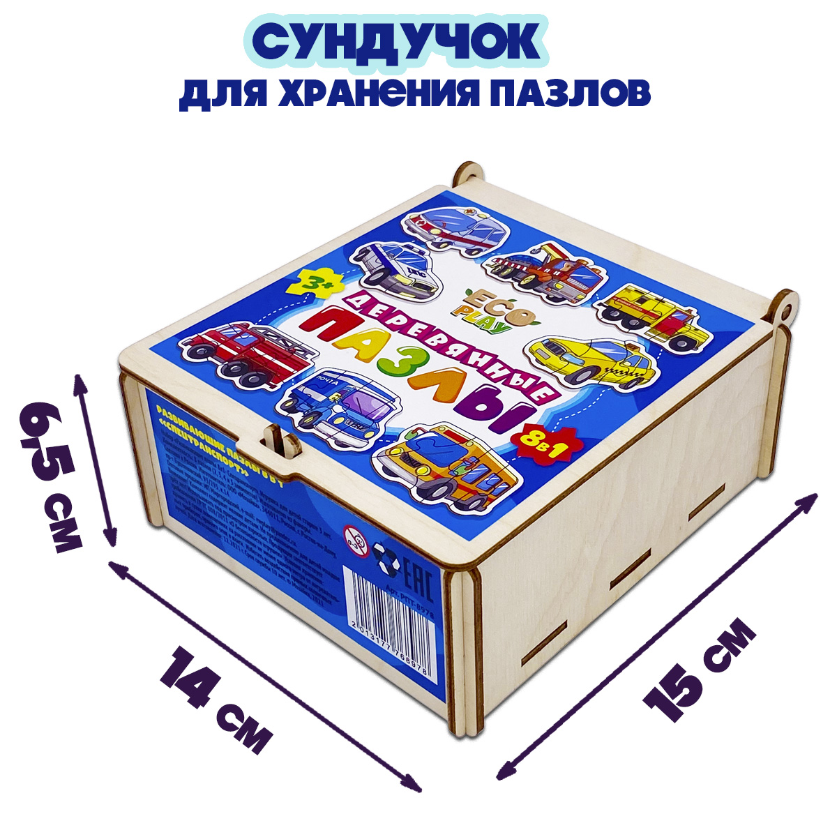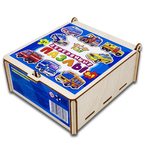 Набор пазлов из дерева для малышей "Транспорт" 8 пазлов деревянные пазлы в красивом и практичном деревянном сундучке. 2,3,4,5,6 крупных элементов.