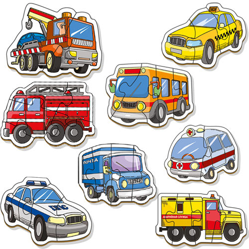 Набор пазлов из дерева для малышей "Машинки" 8 пазлов деревянные пазлы в...