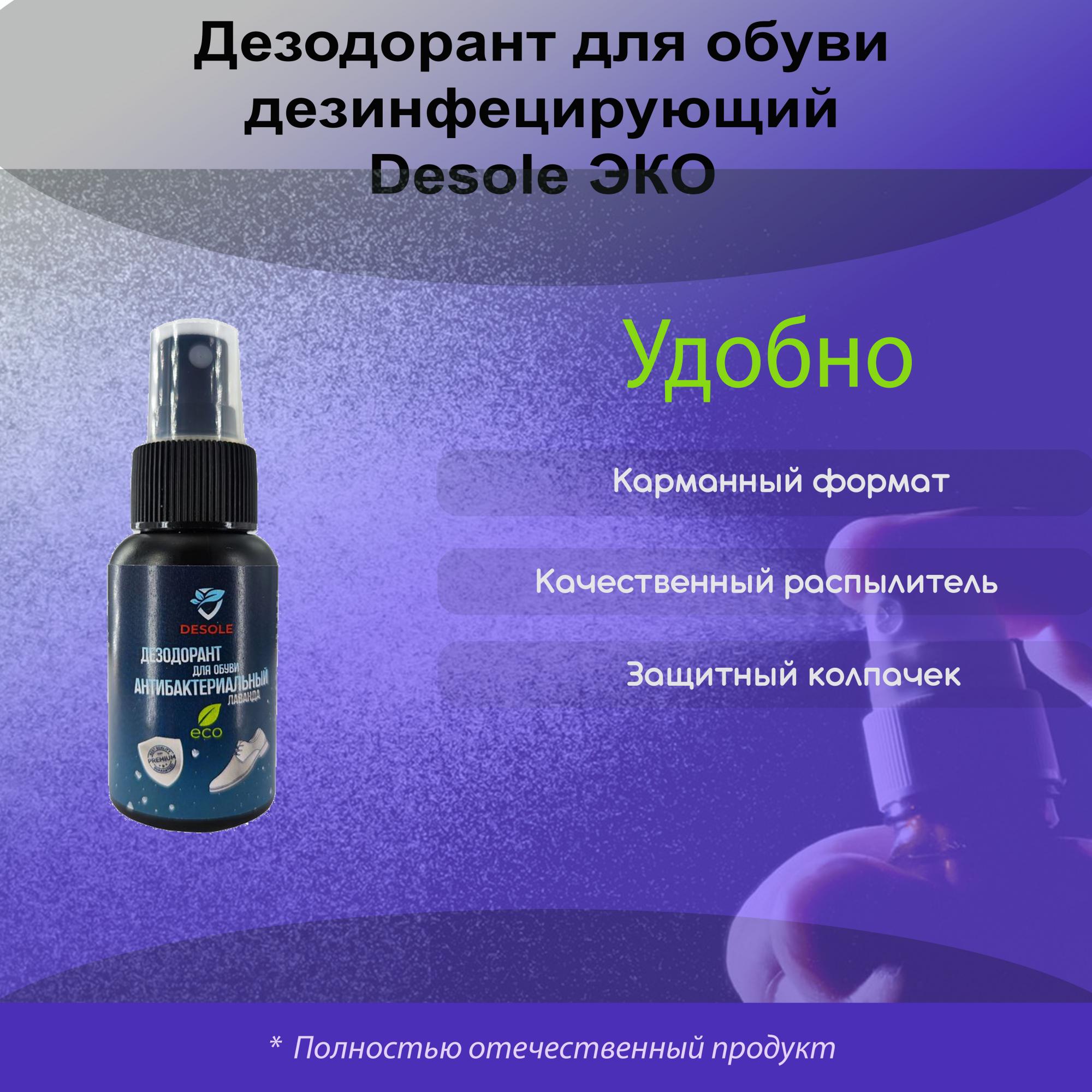 Быстро нейтрализует неприятные запахи и благодаря содержанию спирта с ионами серебра уничтожает бактерии, придавая приятный аромат. Не вредит коже человека, подходит для всех видов обуви. Содержит натуральный ароматизатор «Лаванда».