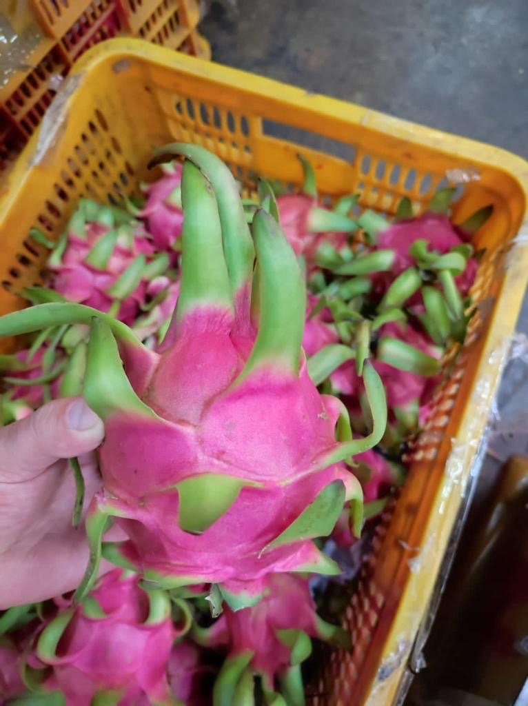 (ПИТАХАЙЯ) Другие его названия – драконий фрукт или питайя. Интересен тот факт, что эти растения принадлежат семейству Кактусовых. Фрукт имеет не только экзотическое название, но и внешний вид. Его цвет – ярко розовый, по размеру питахайя похожа на большое яблоко, только более вытянутое. Плод покрыт крупной чешуёй, кончики которой окрашены в ярко-салатовый или зелёный цвет. Мякоть питахайи бывает белого или фиолетового цвета, в ней очень много мелких косточек, которые распределены по всему объёму плода.