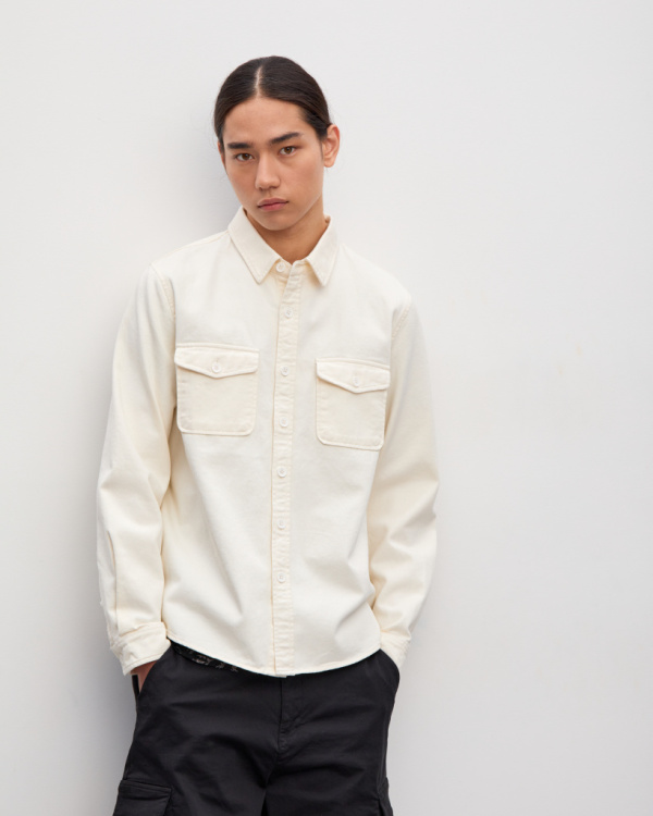 Куртка-рубашка мужская, прямого фасона, с застежкой на пуговицы и отложным воротником. Нагрудные карманы с клапанами, манжеты на длинных рукавах. Модель из однотонного хлопкового денима. Такая джинсовая куртка станет удачным приобретением для весенне-летнего гардероба, участвуя в повседневных аутфитах с одеждой в разной цветовой палитре.