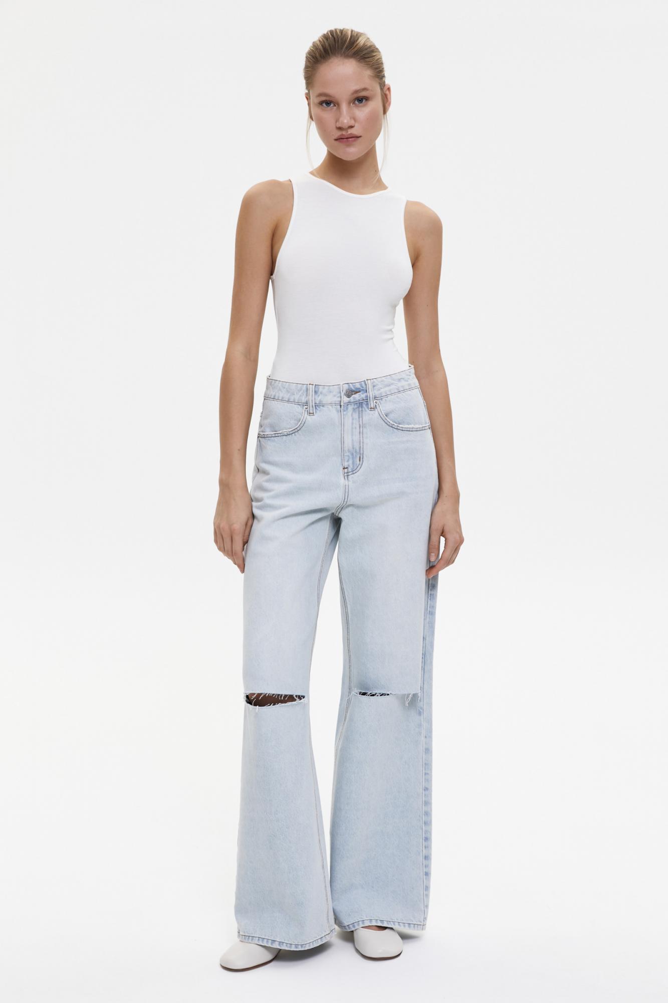 Джинсы палаццо на высокой талии – новое прочтение самой популярной модели брюк. Свободный крой изделия выигрышно подчеркивает линию талии и бедер. Комфортное прилегание не сковывает движения. Мы дополнили любимую модель акцентными, но при этом аккуратными разрезами.