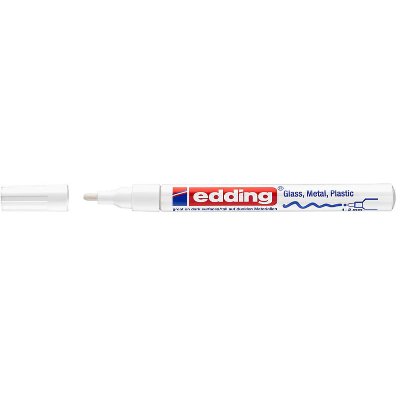 Рисование и декорирование гладких поверхностей никогда не было таким простым с помощью маркеров edding. Круглый и мягкий наконечник маркера толщиной 1-2 мм позволяет создавать подробные надписи и украшения на стеклянных поверхностях, елочных шарах, формах для печенья или ящиках для хранения. Его непрозрачные чернила обеспечивают хорошее покрытие и обладают отличной стойкостью. Работа с этим маркером доставляет удовольствие благодаря чернилам со слабым запахом. Кроме того, он устойчив к воде, истиранию, свету и температуре. Глянцевый маркер edding 751 доступен в нескольких ярких цветах. - Глянцевый маркер для нанесения непрозрачных, стойких и устойчивых к пятнам надписей и декорирования гладких и даже темных и прозрачных материалов, например стекла, металла, пластика и мелованной бумаги - Круглый наконечник имеет ширину хода 1-2 мм. - Пигментные чернила, похожие на краску, быстросохнущие, устойчивые к атмосферным воздействиям, чрезвычайно светостойкие и износостойкие. - Доступен в 22 различных цветах - Доступны подходящие запасные перья (запасные перья edding 751). - Чернила со слабым запахом без добавления толуола / ксилола - Качественный алюминиевый корпус Характеристики: - Форма наконечника: круглый наконечник - Ширина хода: 1-2 мм - Доступны запасные перья - Постоянный - Слабый запах - Водонепроницаемый - Износостойкий - Термостойкий - Устойчивый к пятнам - Lightfast - Чрезвычайно светостойкий - Быстро сохнет - Широкий выбор ярких глянцевых цветов, особенно блестящих для цветов металлик - Клапанная система обеспечивает равномерный поток чернил для отличного покрытия - Фольга гарантирует, что продукт не будет использован при покупке - Простой и понятный в использовании для несложного, спонтанного творчества - Долговечный в помещении и на улице - Качественный брендовый продукт Применение: - Встряхните маркер крышкой. - Снимите колпачок - Прокачайте маркер острием вниз, например, на макулатуру. - Осторожно прокачивайте его вверх и вниз, пока чернила не заполнят перо. - Маркер готов к использованию. - Хранить горизонтально