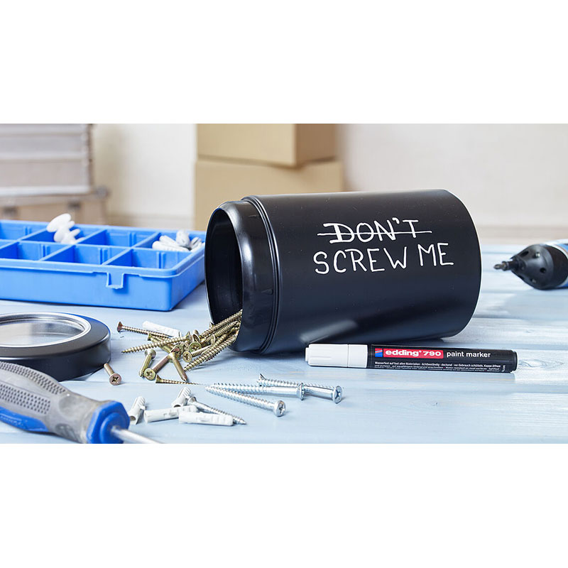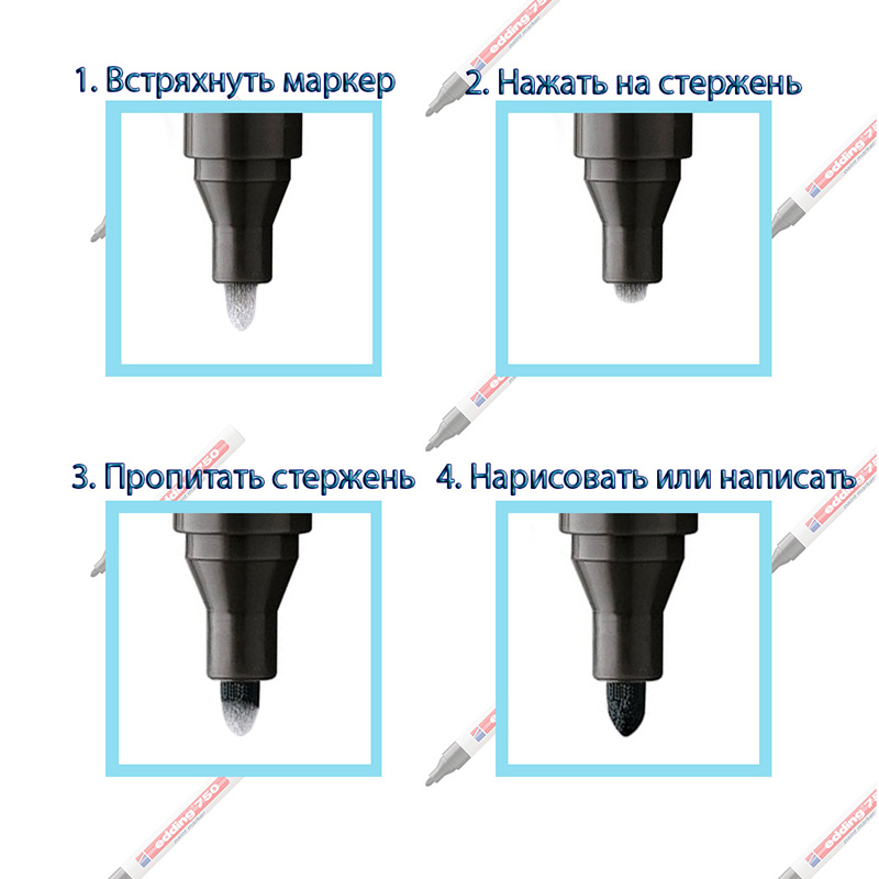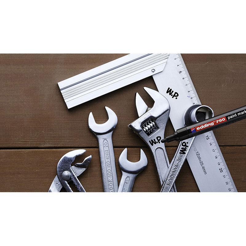 Независимо от поверхности, будь она гладкой, как стекло, шероховатой, как железо трубного ключа, или блестящей, как полированная лакировка, вы можете пометить все это маркером edding 790. Благодаря очень непрозрачным чернилам, напоминающим лак, он специализируется на маркировке самых разных материалов, даже темных, что делает его универсальным маркером не только для энтузиастов DIY. Краски-маркер edding 790 водостойкий, стойкий и предлагает различные цвета, что делает его идеальным компаньоном для вашей мастерской. - Красковый маркер для непрозрачной и стойкой маркировки и маркировки темных, прозрачных и гладких материалов, например стекла, металла и пластика. - Круглый наконечник имеет ширину хода 2-3 мм. - Чернила для маркеров светостойкие, быстросохнущие и водостойкие. - Доступен в черном, красном, синем, зеленом, желтом, белом, золотом и серебряном цветах. - Чернила со слабым запахом без добавления толуола / ксилола Характеристики:  - Форма наконечника: круглый наконечник - Ширина хода: 2-3 мм - Постоянный - Слабый запах - Водонепроницаемый - Износостойкий - Устойчивый к пятнам - Lightfast - Быстро сохнет - Колпачок можно переставить - Долговечный в помещении и на улице - Видимая маркировка даже в условиях плохого освещения - Колпачок можно хранить на конце ствола, чтобы не потерять его. - Интенсивные цвета - Широкая цветовая гамма - Качественный брендовый продукт - Сделано в Германии Применение:  - Встряхните маркер крышкой. - Снимите колпачок - Прокачайте маркер острием вниз, например, на макулатуру. - Осторожно прокачивайте его вверх и вниз, пока чернила не заполнят перо. - Маркер готов к использованию. - Хранить горизонтально