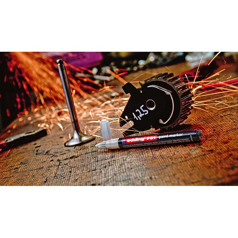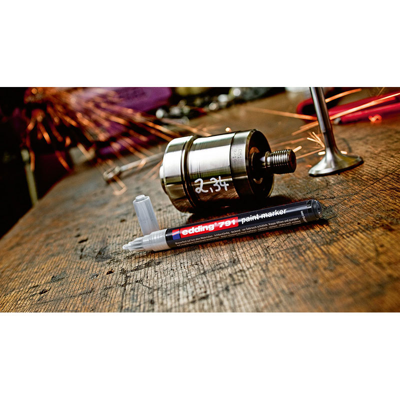 Наличие под рукой лакового маркера edding 791 может стать определяющим фактором долгосрочного делового успеха. С ним увеличить производительность в любой из промышленных отраслей будет намного легче. Когда для предприятий наступает горячая пора, высокоукрывистые чернила лакового маркера edding 791 продолжат блистать не менее ярко, чем прежде. И даже в непонятных ситуациях, вы можете оставаться спокойны: этот маркер edding мастерски справится с поставленными перед ним задачами. Особенности: - Лаковый маркер для нанесения сверхплотных и перманентных обозначений и маркировки на темные, прозрачные и гладкие материалы, например, на стекло, металл и пластмассу - Ширина штриха округлого наконечника составляет 1-2 мм - Чернила этого лакового маркера характеризуются свето- и водостойкостью и быстро сохнут - Продукт доступен в черном, красном, синем, зеленом, желтом, белом, золотом и серебряном цветах - Чернила практически не имеют запаха и не содержат толуола и ксилола Характеристика: - Форма наконечника: округлый наконечник - Ширина штриха: 1-2 mm - Перманентный - Практически без запаха - Водостойкий - Износостойкий - Не размазывается - Светостойкий - Быстросохнущий - Можно изменять положение колпачка Применение: - Снимите колпачок - Подкачайте маркер, поместив наконечник, например, на кусочек бумаги - Осторожно подкачайте наконечник, нажимая на него, а затем отпуская его, пока не станут поступать чернила - Теперь маркер готов к использованию - Храните в вертикальном положении