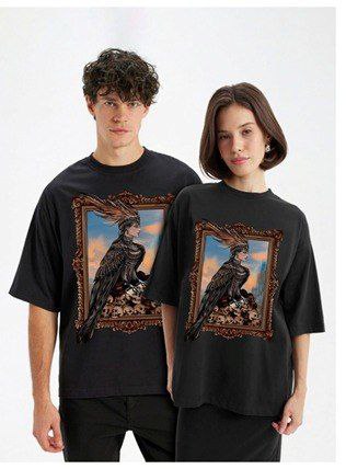 Футболка унисекс, оверсайз с принтом «Сирин»: мифологический образ райской птицы, сочетающий в себе красоту и опасность, вдохновленный славянской мифологией, картинами Васнецова и Верещагина. Символ двойственности, притяжения к свету и страха перед неизвестным, райской гармонии и тени смерти. Красота, уводящая в гибель, и память-предупреждение.
