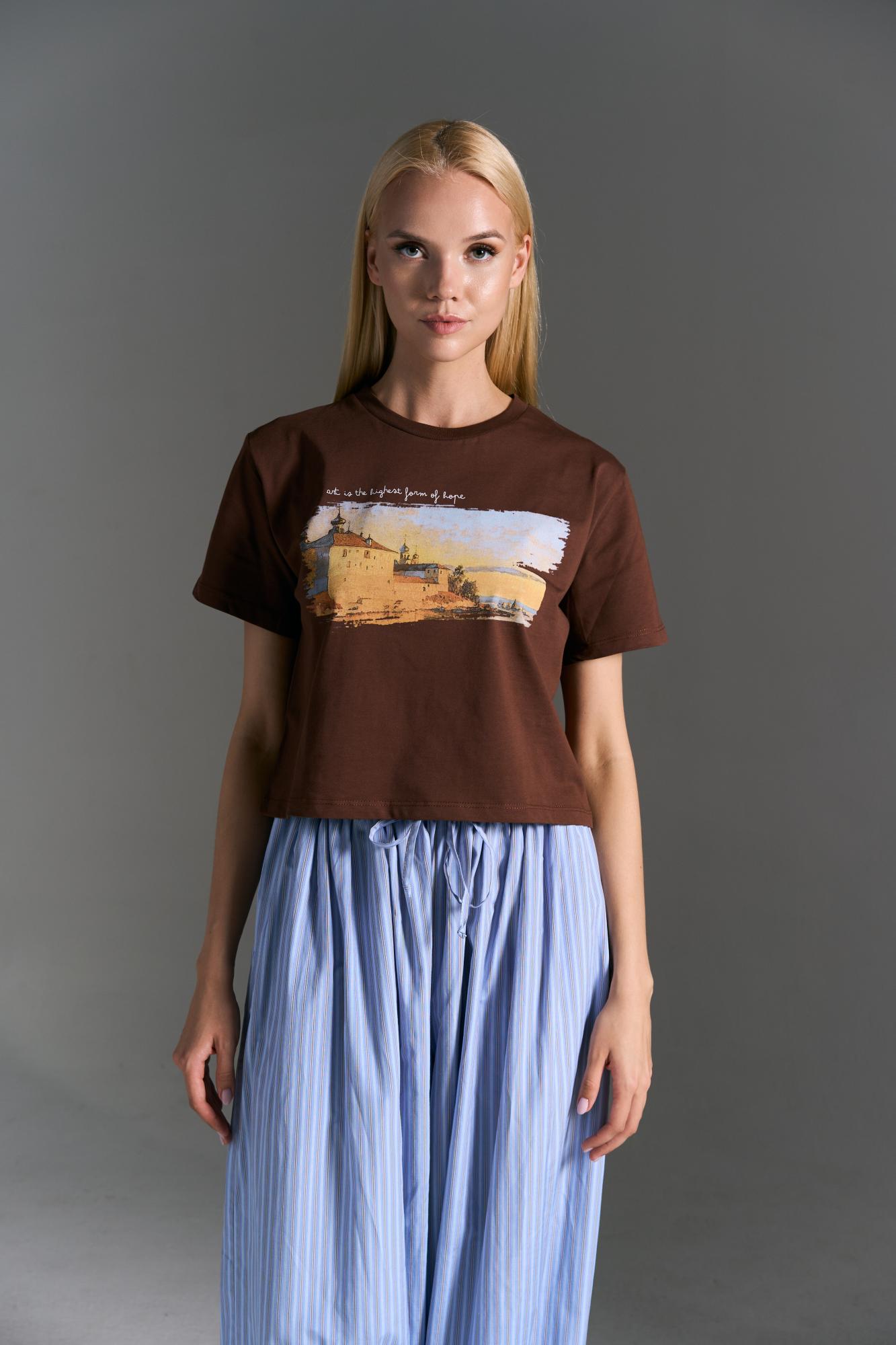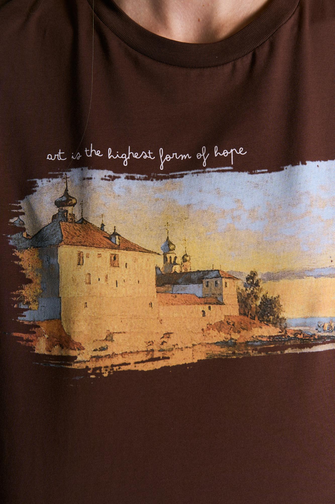 Кроп-топ "Соловки": стильный образ с глубоким смыслом. Укороченный крой подчеркивает силуэт, а принт, вдохновленный полотнами Нестерова и Поленова, представляет Соловецкий монастырь в виде "пейзажа духа", наполненного светом, верой и историей. Отличный выбор для тех, кто ценит красоту и глубину в деталях.