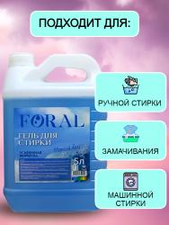 Гель для стирки FORAL превратит Вашу стирку в настоящую SPA-процедуру для Вашей одежды. Он подходит для всех видов тканей и обладает мощной формулой, которая отлично удаляет пятна, загрязнения и запахи, не повреждая волокна ткани, сохраняя их структуру, форму и цвет, придавая Вашему белью невероятную мягкость и свежесть. Особая густая текстура позволяет максимально эффективно использовать каждую его каплю. Он легко распределяется по поверхности ткани, проникает в глубину волокон, мягко и эффективно удаляет загрязнения. Кроме того, жидкий порошок хорошо смывается водой во время полоскания, не оставляя никакого неприятного налета или остатков на тканях. Специальная усиленная формула, обогащенная энзимами, которые действуют как естественные природные очистители, способствуют быстрому и эффективному удалению загрязнений, расщепляя их на мельчайшие частицы. В его составе отсутствуют агрессивные соединения, что делает его более подходящим для людей с чувствительной кожей. Гель для стирки 5л подходит для использования как для машинной стирки, так и для ручной. Его формула разработана с учетом современных технологий и требований, и полностью соответствует единым санитарно-эпидемиологическим и гигиеническим требованиям. Гель для стирки 5 литров – это экономичное решение для Вашей семьи. Большой объем – это экономичная стирка, что позволяет использовать гель в течение длительного времени, без необходимости постоянно покупать новое средство, и экономит Ваши деньги и время. Гель для стирки белья FORAL предназначен для стирки как в домашних условиях, так и для профессионального применения.