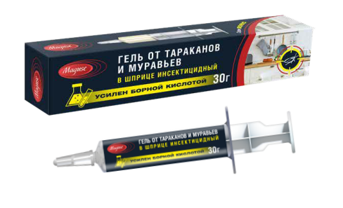 Гель усиленный борной кислотой и фирменной пищевой приманкой - это высокоэффективное средство для борьбы с тараканами и муравьями в жилых и нежилых помещениях.