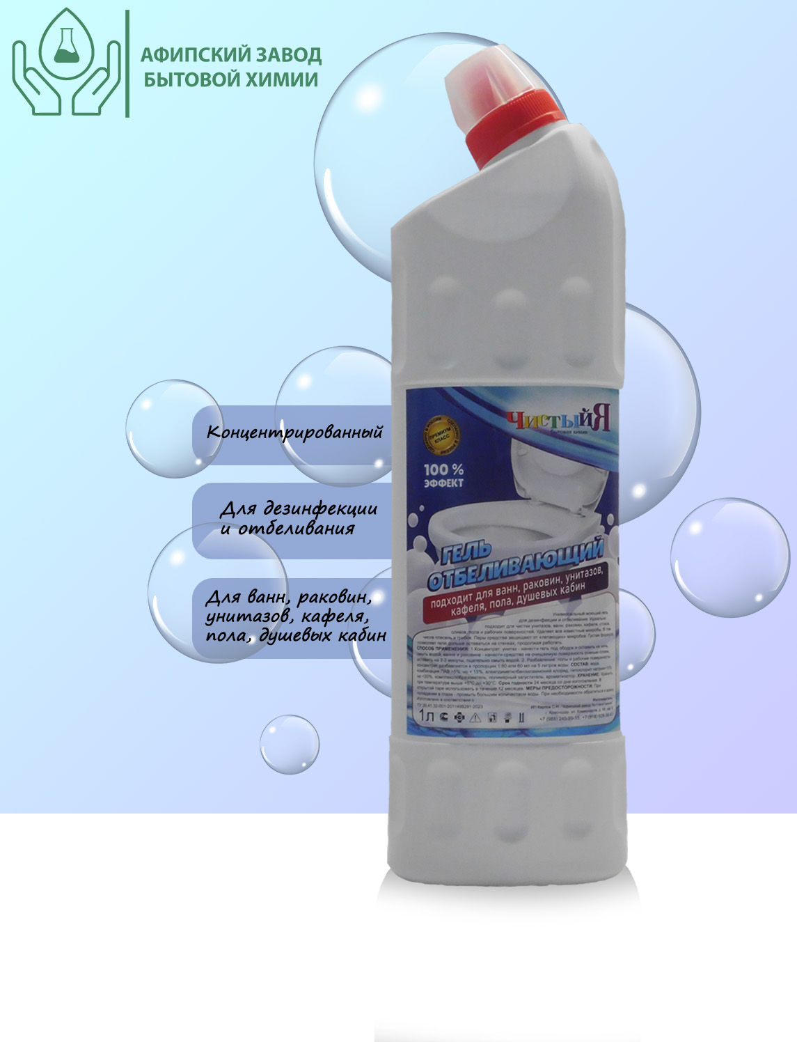 СОСТАВ: вода, комбинация ПАВ>5%, но <15%, алкилдиметилбензиламмоний хлорид, гипохлорит натрия>10% но <20%, комплексообразователь, полимерный загуститель, ароматизатор.