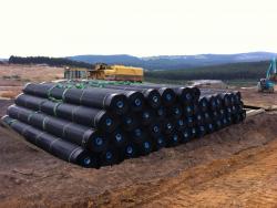 Эксплуатируется Геомембрана – ПНД (HDPE) 1,0 Тип 1 в условиях с климатическим исполнением: У, ХЛ, Т и категорией размещения 5, согласно ГОСТ 15150, контакта с водой, почвогрунтами с показателем кислотности pH=0,5 – 14.