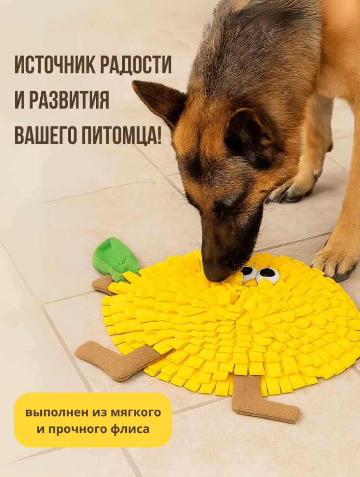 Представляем вашему вниманию игрушку для собак мелких средних и крупных пород - нюхательный коврик от Big Jungle в желтом цвете, выполненный из мягкого и прочного флиса!