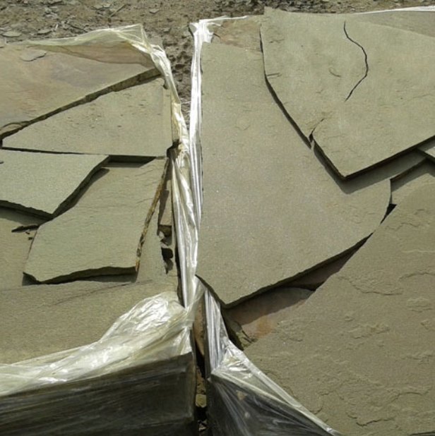 Камень пиленый плитка серо-зеленая со сколом песчаник природный от ИП Сидорова...