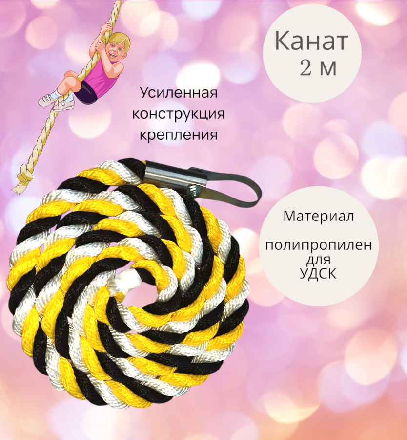 Канат имеет длину 200 см, что позволяет использовать его как для взрослых, так и для детей.