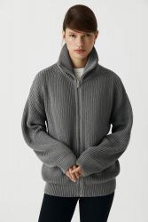 Кардиган вязаный на молнии из хлопкового трикотажа. Лаконичный дизайн, свободный силуэт и высокая горловина делают модель самой уютной вещью гардеробе. Изделие выполнено со спущенной линией плеча, благодаря чему не сковывает в движении. Изделие оформлено ластиками, во избежании деформации.