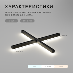 Х-образный универсальный светодиодный светильник, 1190*1190*50 мм, 4000 К, 36 W