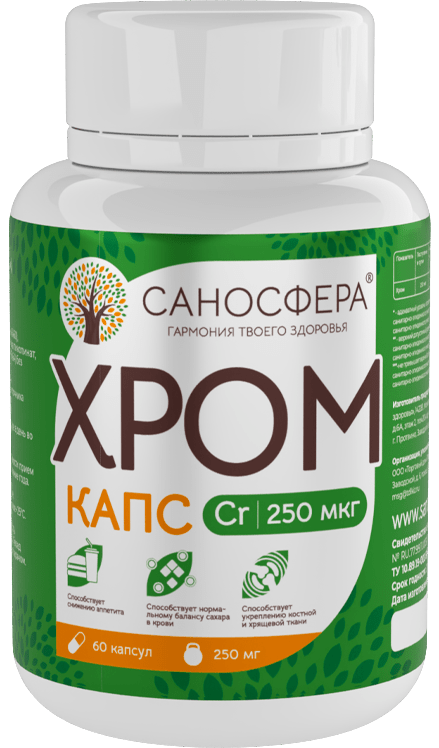 Средство используется как дополнительная добавка к потребляемой пищи в качестве регулятора инсулина, а как следствие и глюкозы в крови. хром учавствует в метаболизме углеводов, напрямую влияет на уровень глюкозы в крови и способствует предотвращению развития диабета. Хром благотворно влияет на обмен веществ в организме, помогая снижать уровень холестерина и поддерживать работу сердечно-сосудистой системы.