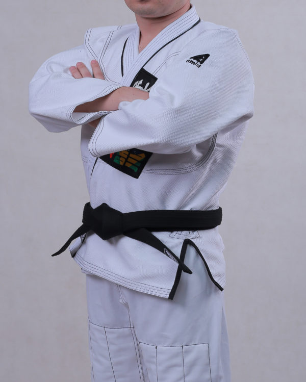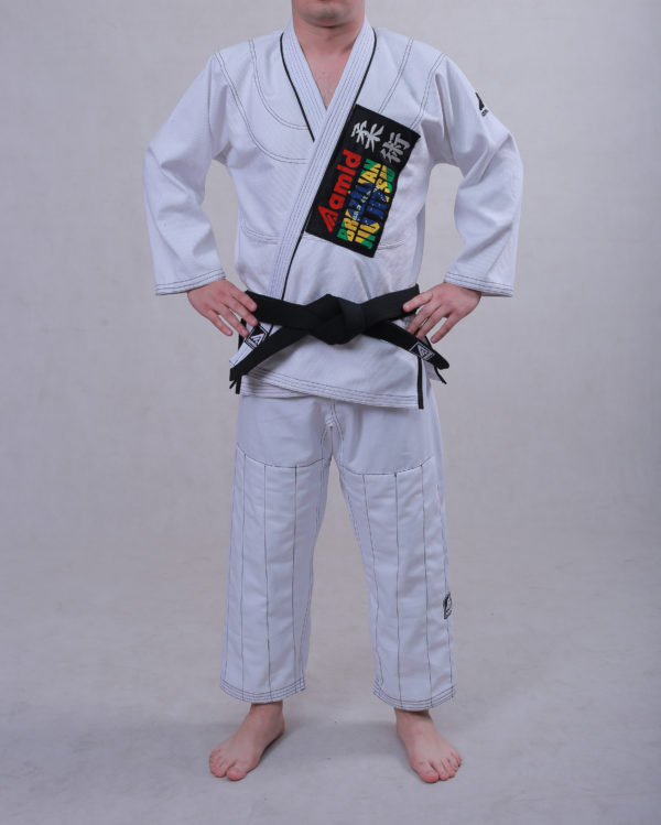 Куртка изготовлена из высококачественной хлопковой ткани плотностью 450 г/м². Сшита из целого куска ткани, без шва на спине, тем самым обеспечивается прочность, комфорт и долговечность ГИ. Брюки с укрепленными коленями, которые пошиты из более тонкой ткани плотностью 250 г/м². Места, подверженные наиболее интенсивному воздействию (лацканы, колени, проймы) усилены специальными вставками. Выполнено с учетом всех базовых требований, выдвигающихся к кимоно для джиу-джитсу