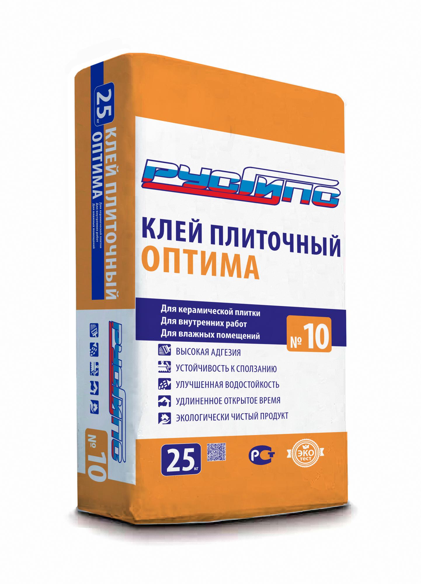 Смесь сухая гипсовая клеевая для укладки керамической плитки для внутренних работ, №10 Оптима т.м. «Русгипс», С0. Данный клей обладает высокими эксплуатационными свойствами: быстрая фиксация, удобство в применении, устойчивость к сползанию плитки. Выпускается по ТУ 23.64.10-016-48456123-2018.