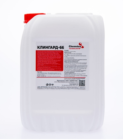 Клингард-66 предназначен для предотвращения коррозии, образование солей жесткости воды на внутренних поверхностях различных емкостей, технологического оборудования, при стерилизации, пастеризации и варки в водяной бане консервов (молочных, мясных, рыбных, паштетов и др.) в жестяной и стеклянной таре; посудомоечных, тарамоечных машин для удаления остатков щелочи, моющих средств на поверхностях посуды, тары, инвентаря при ополаскивании от щелочных моющих средств на предприятиях пищевой и перерабатывающей промышленности.
